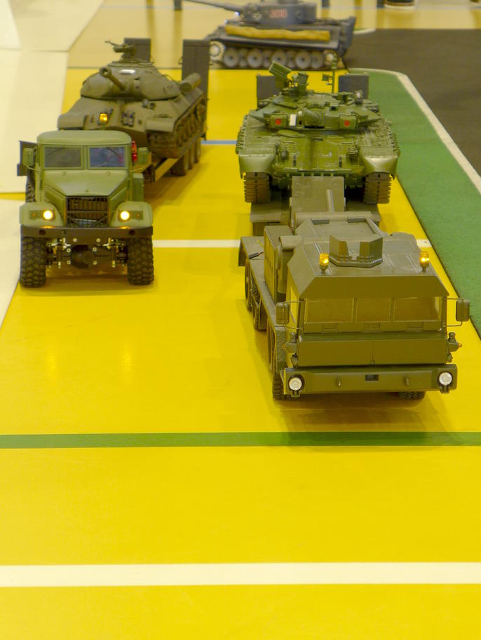 Ve 14:05 se najednou z reproduktorů ozvalo, že v hale proběhne vystoupení modelů letadel. Holt jaro je tady, zase se rojí okřídlená zvěř ve vzduchu. Dofotil jsem pár fotek, popadl Tatru a schoval ji do krabice. Neznaje program leteckého dne jsem nechtěl riskovat její poškození, kdyby nějakému bombardéru náhodou vypadla puma (stejně jako se vyhýbám dělostřelcům, kteří mají zkázu prototypu Tatry 130 na svědomí!)