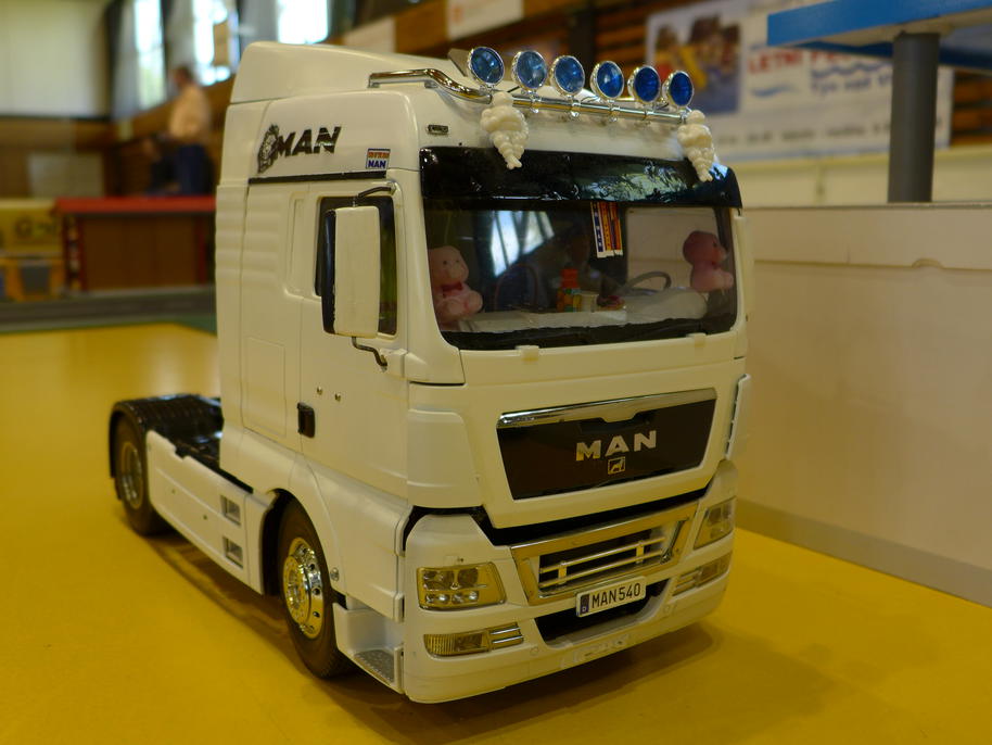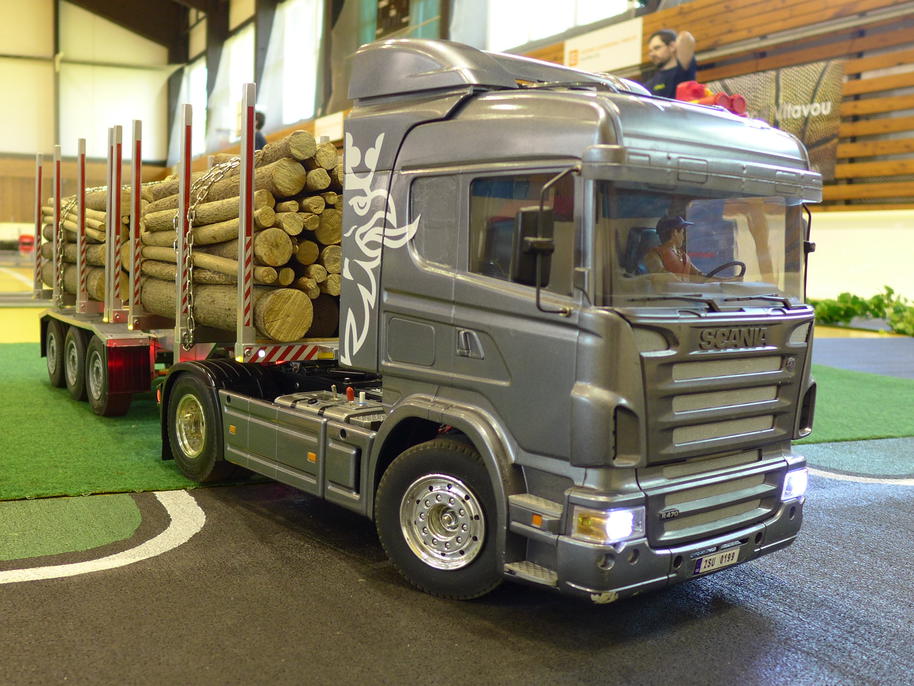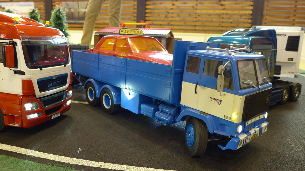 Celý den jsem číhal, až se tohle překrásné Volvo dá do pohybu. Model jsme měli možnost vidět už v Domažlicích před několika lety. Opět se nejedná o žádnou stavebnici, ale poctivě stavěný model od začátku. Tato Volva (především ve variantě tahač návěsů) si pamatuji jako malý kluk.
