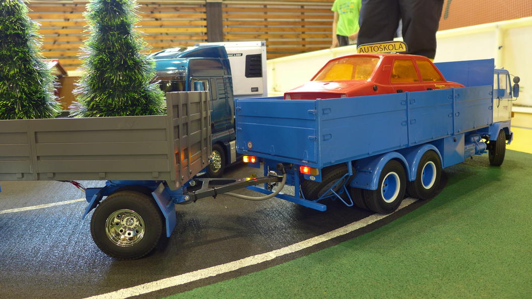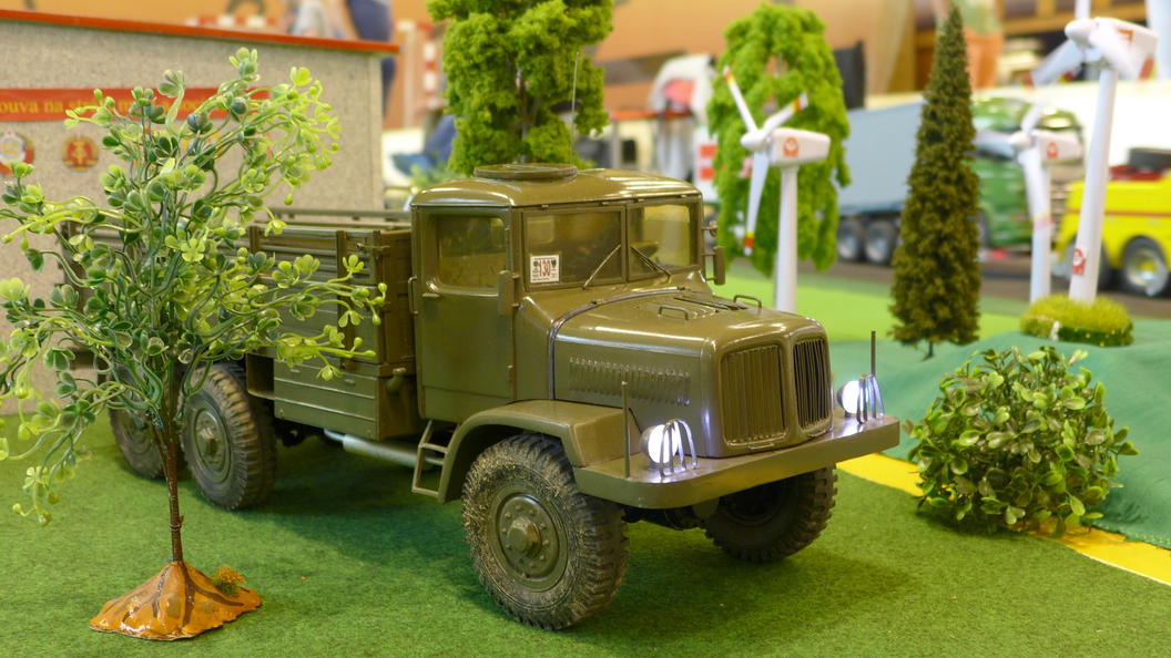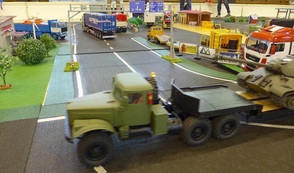 Na srazu představil svůj krásný model tahače Kraz 255V. Není to žádná stavebnice, ale poctivě stavěný model od začátku. Model je velmi realistický – kabina, stejně jako drobná bižuterie na podvozku a disky. Z mého pohledu jeden z nejzajímavějších modelů na ploše. Když pak nastartoval svou benzínovou V8 (se spotřebou 1 l/km :) ), byla iluze ruské invaze do Československa téměř dokonalá.