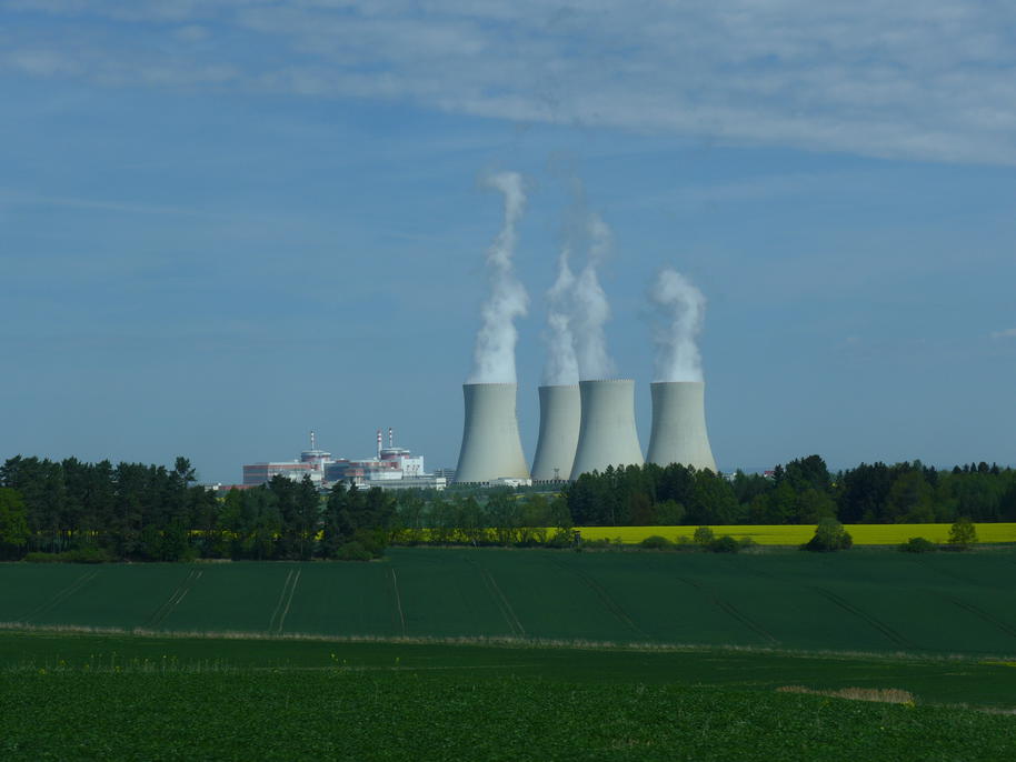 Nakonec to ale dobře dopadlo, už před 11. hodinou nás před "Tejnem" vítaly majestátní chladicí věže jaderné elektrárny v Temelíně, aktuálně běžící na plný výkon. Škoda, že vyhořelé palivo v sudu nelze koupit na doma ... jako zaručený zdroj tepla na 60 let :) . Mimochodem, věděli jste, že uvnitř elektrárny je nižší úroveň radioaktivity, než v jejím okolí :) ? Ale jelikož aktuální euro-doktrína upřednostňuje ekologické obnovitelné zdroje, které "vůbec" nezpůsobují problémy v přenosové soustavě, musela být na ploše smečka větrníků.