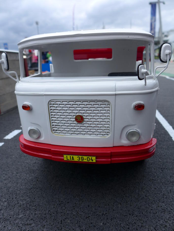 Krásná leštěnka Škoda 706 MS v konfiguraci 4x2 – tedy přední kola mají nehnané Trilexy – na RC truck show v Teplicích .