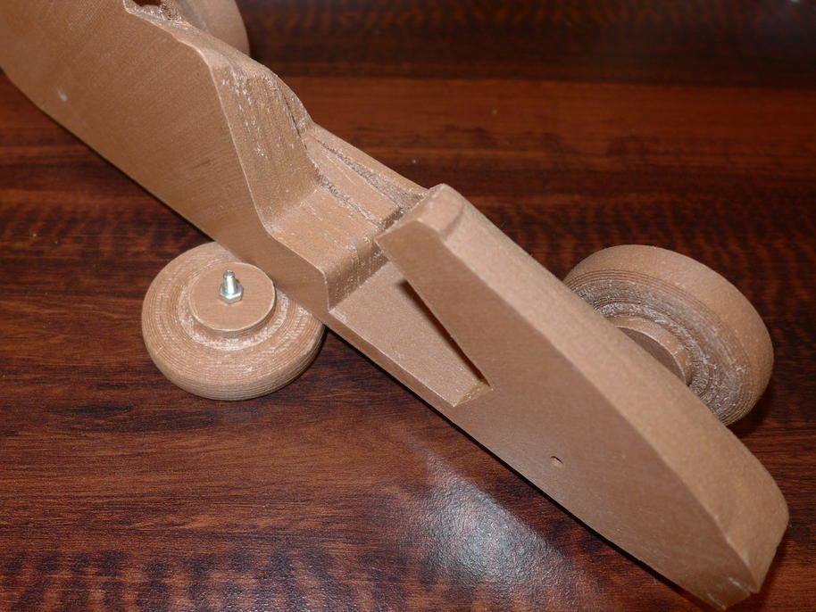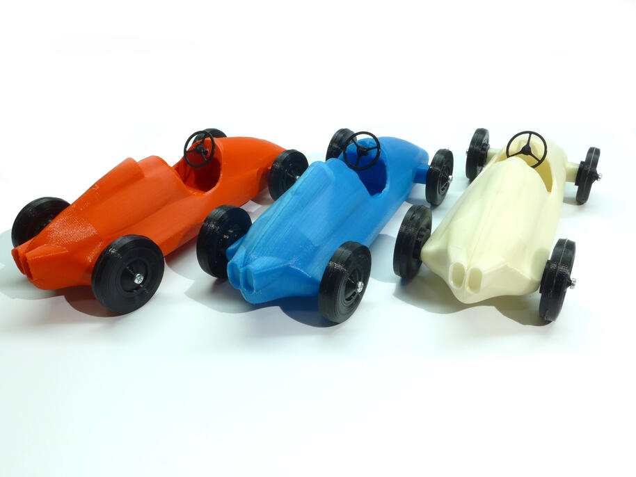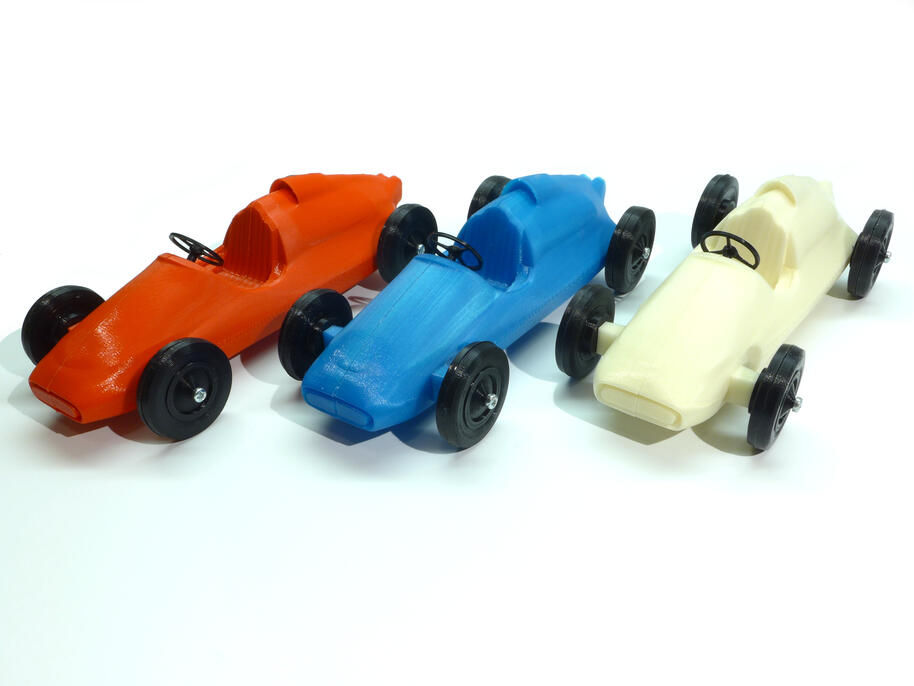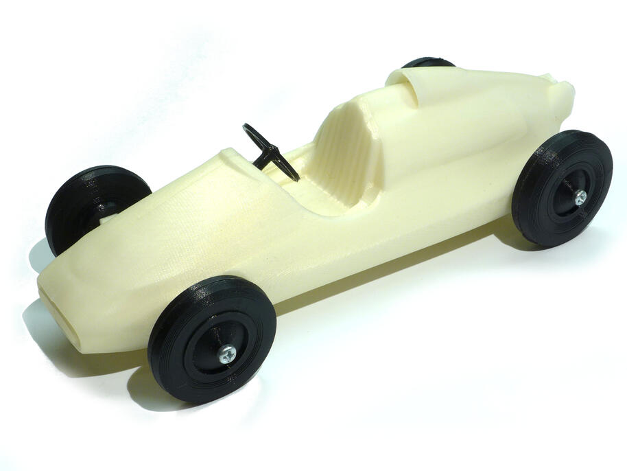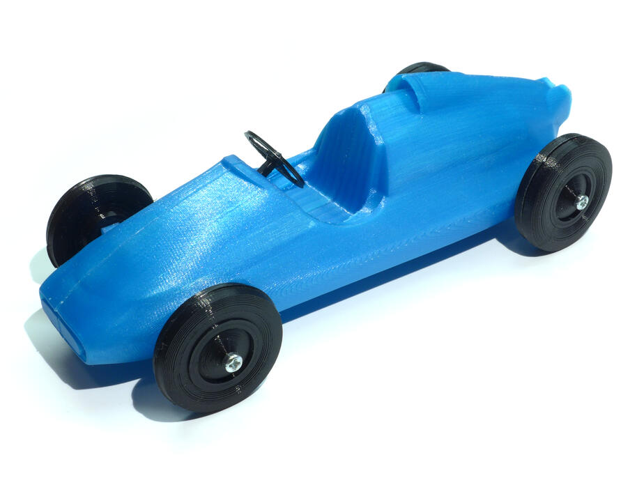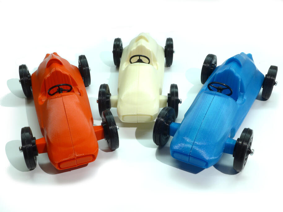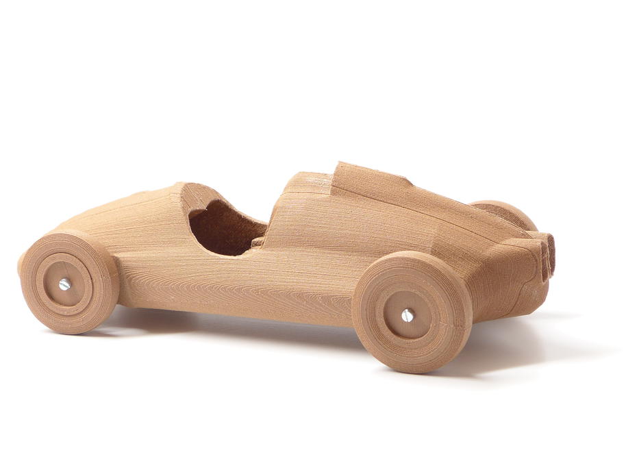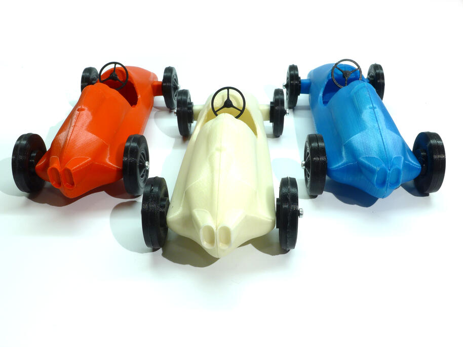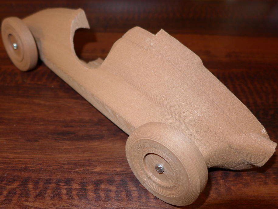 Jako slicer jsem použil KISSlicer, který dělá výborné a bezchybné podpůrné struktury. Tiskl jsem vrstvou 0.2mm (aby to vypadalo jako dřevo), kola rychlostí 20-30mm/s a karoserii nakonec 40-60mm/s. Teplota tisku 165-180°C, opět jsem s tím laboroval, abych zjistil, proč se struna seká.