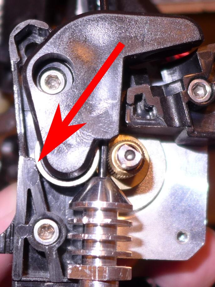 Tyto dvě naprosto fatální výrobní vady (a dost možná i návrhové vady) prakticky znemožňovaly, aby se přítlačné kolečko rozumně točilo spolu s procházejícím materiálem. Respektive materiál v jeho průchodu naopak přímo brzdilo, což se zvláště projevovalo v případě dřevěného a také pružného materiálu. Druhým extruderem jsem právě také prováděl první testy s pružnými materiály, když jsem zkoumal jejich vlastnosti pro potenciální tisk pneumatiky . Ještě že jsem pak pro finální tisk zvolil první extruder! Celou situaci navíc značně komplikoval fakt, že mechanizmus přítlaku je schován v tiskové hlavě a není na něj vůbec vidět. A že se netočí přítlačné kolečko, protože je opřené o nějakou jinou část tiskárny, by mě tedy ani ve snu nenapadlo. Měl jsem pocit, že tiskárna je navržena tak, že k takovým situacím za běžného provozu nemůže dojít.