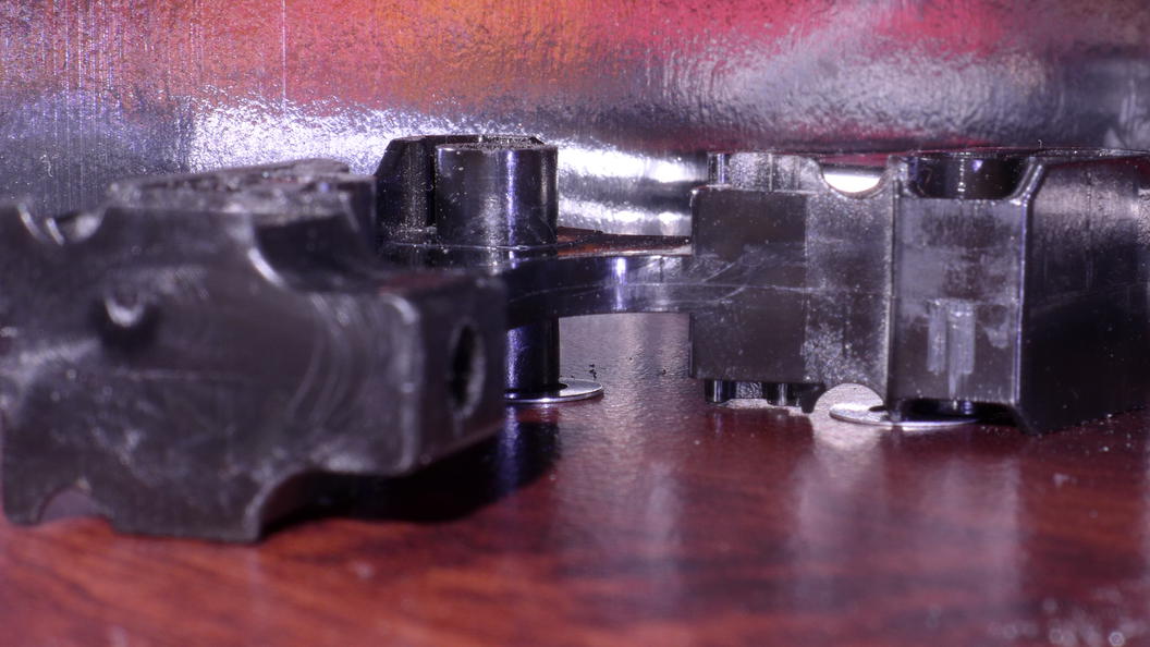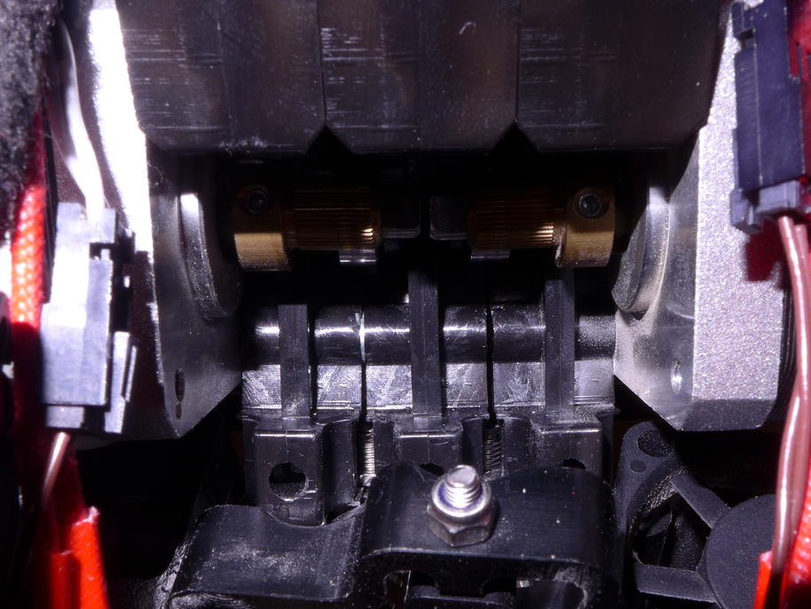 Po složení celého mechanizmu se páka přítlaku najednou jemně pohybuje s procházejícím materiálem (zejména při retract)! To je super, přítlačné kolečko věrně kopíruje materiál. Páka se nechá plně utáhnout i povolit, dokonce i pružina přítlaku se nějak srovnala a nechá se celá "schovat" do vymezené díry.