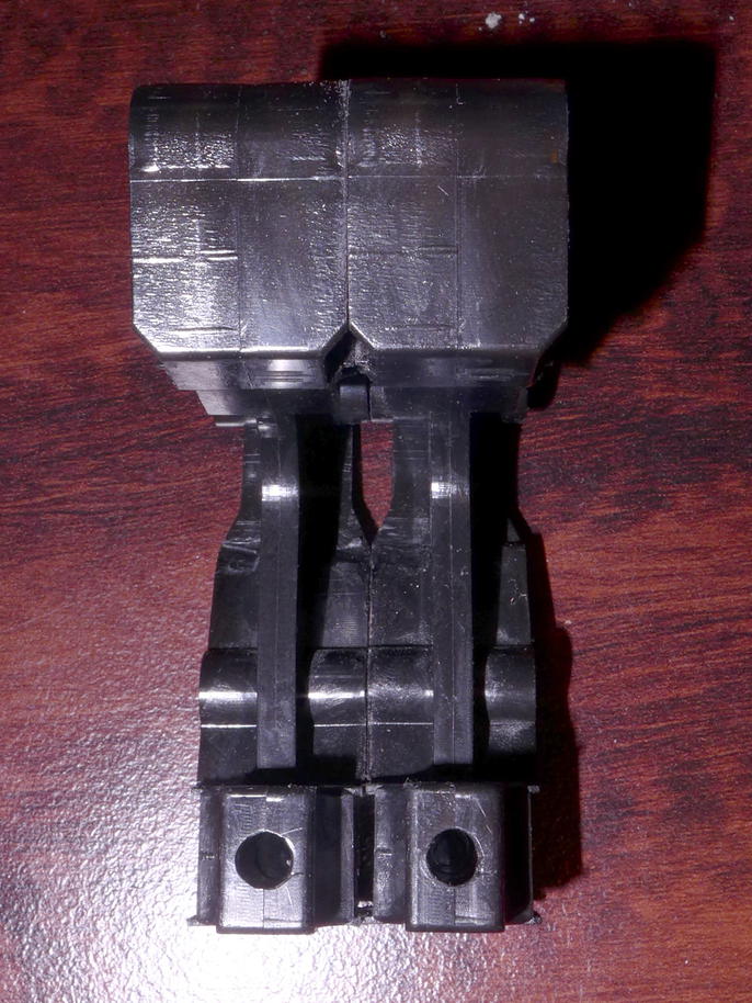 Pak přišlo na řadu zabroušení druhého a třetího plastu vůči sobě – aby mezi nimi zmizela ta díra a plasty seděly přesně na sobě. Vyříznul jsem také prostor pro přítlačné kolečko v plastech obou extruderů, což je patrné na první fotce. Druhý a třetí plast jsou nyní vůči sobě zabroušeny tak, aby zcela přesně doléhaly. Tím pádem tam konečně jde druhý extruder nasunout velmi těsně a ještě lépe utáhnout.