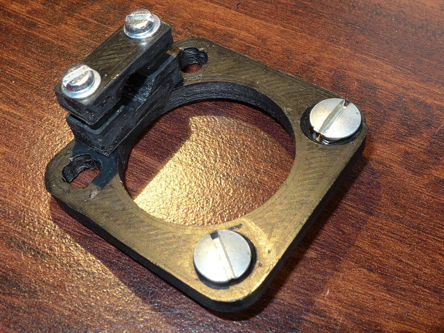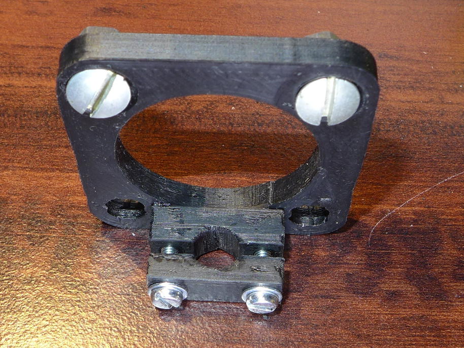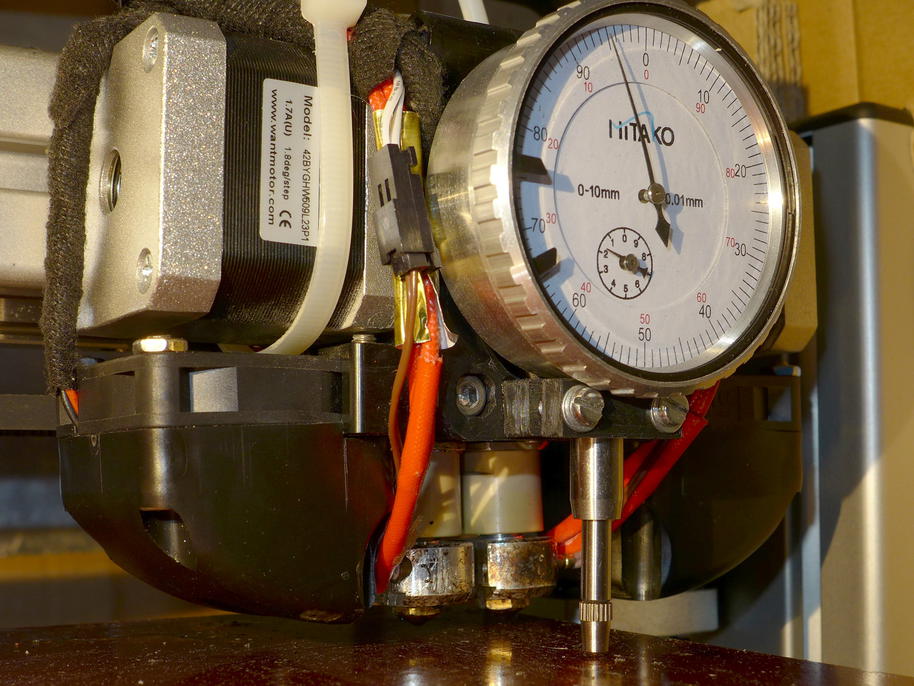 Abych proměřil, co plocha při tisku vlastně přesně dělá, navrhl jsem si jednoduchý držáček, který jsem upevnil do tiskové hlavy a do držáčku utáhl úchylkoměr.