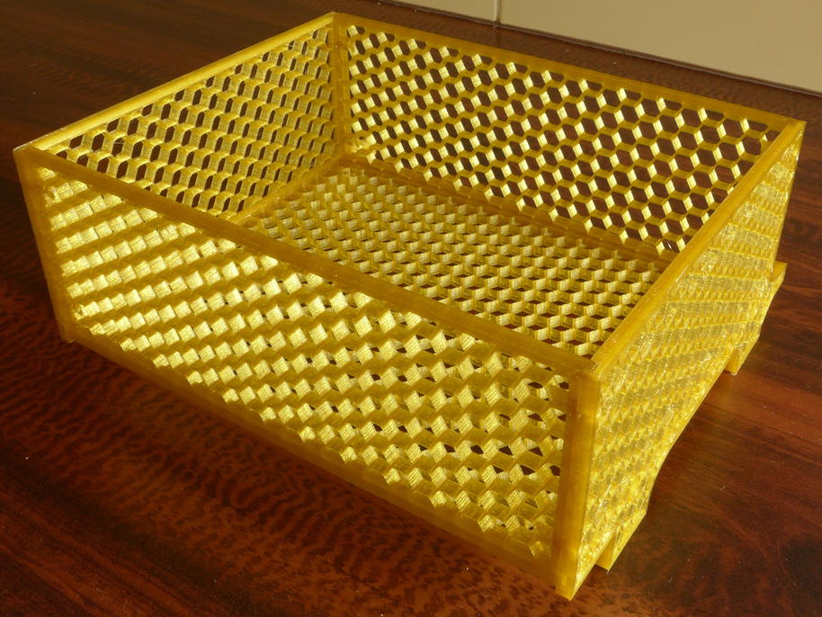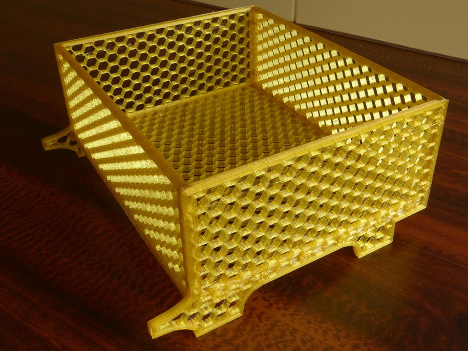 Pro své drobné nářadí a RC komponenty jsem potřeboval krabičky určité velikosti s nožičkami a distanční "ostruhou" tak, aby neležely přímo na podkladu. V lepším případě to měly být spíš košíčky – tedy aby i stěnami mohl proudit vzduch a bylo trochu vidět dovnitř. Výtisk měl být odolný, schopný unést cca 2kg obsahu.