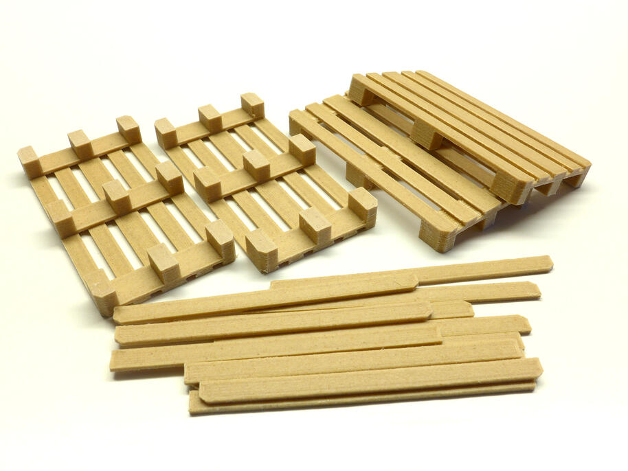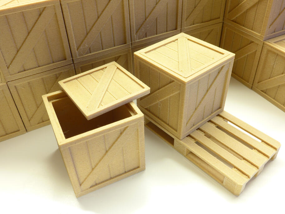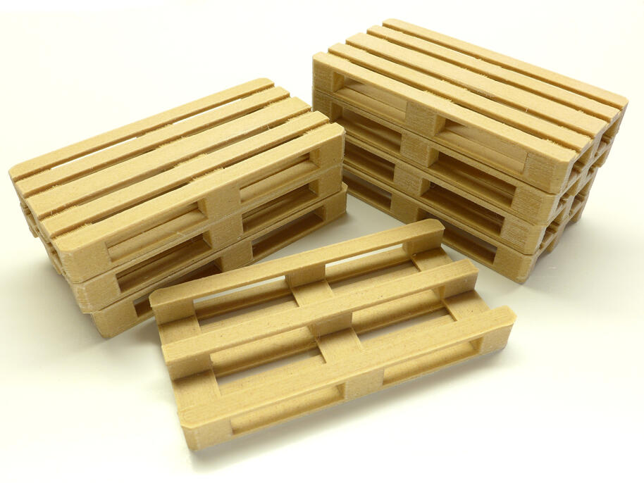 Občas mi někdo vyčte, že Tatra 130 jezdí prázdná. Tak tady je část nákladu, vlastně zatím jen obalový materiál, co bude uvnitř zatím neprozradím ;) . Bedny i palety mají přesně upravené rozměry, aby se co nejlépe vešly na Tatru :) . Beden je celkem 48 a jako zdroj jsem použil tento model z Thingiverse . Podobně jsem využil hotový model palety .