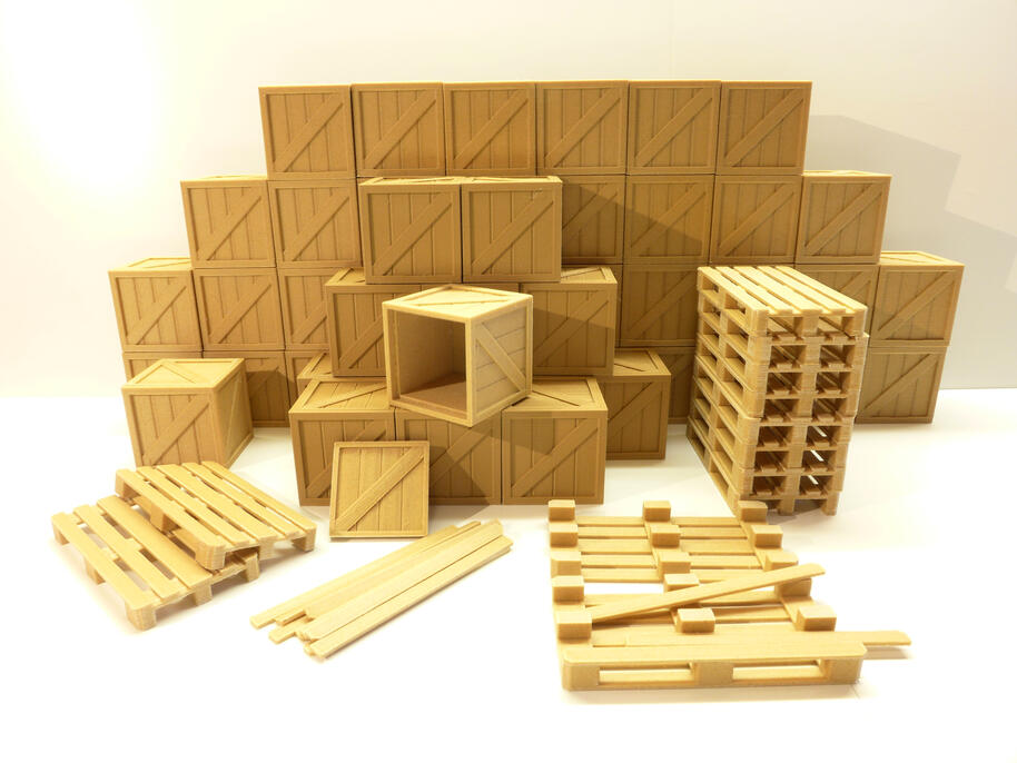 A ještě drobná zajímavost – vytištěné bedny a palety dohromady váží 1165g. Přepočteno z měřítka 1:14 do skutečnosti dává přes 3 tuny jen v obalových materiálech.
