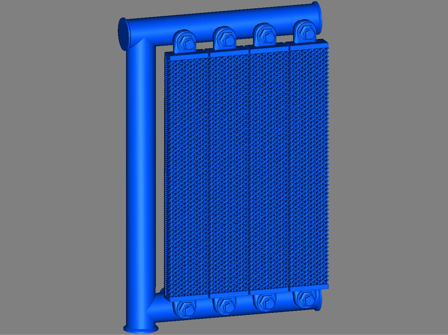 Když už byly známy všechny rozměry a možný způsob zhmotnění, vznikl počítačový 3D modelu chladičů relativně rychle.