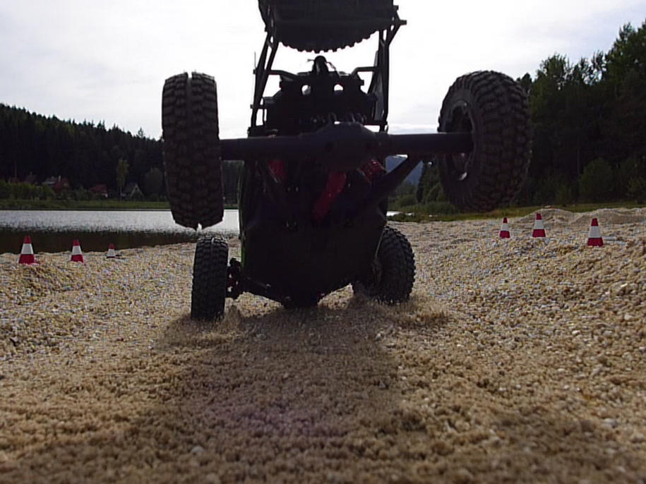 - Damage – both rides were not devastating, the car worked mechanicaly well. I just noticed one thing – left drive shaft of the front wheel is a bit sanded. Closer examination showed that the shaft hits a bottom pin in the axle arm when the suspension hits a bump. On the right side it's not happening.