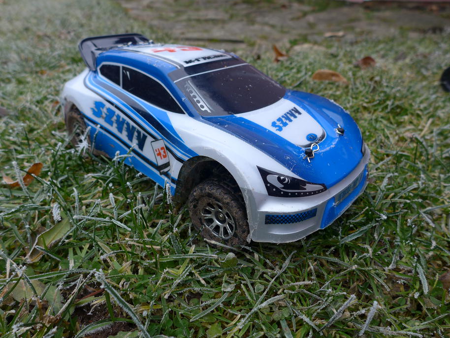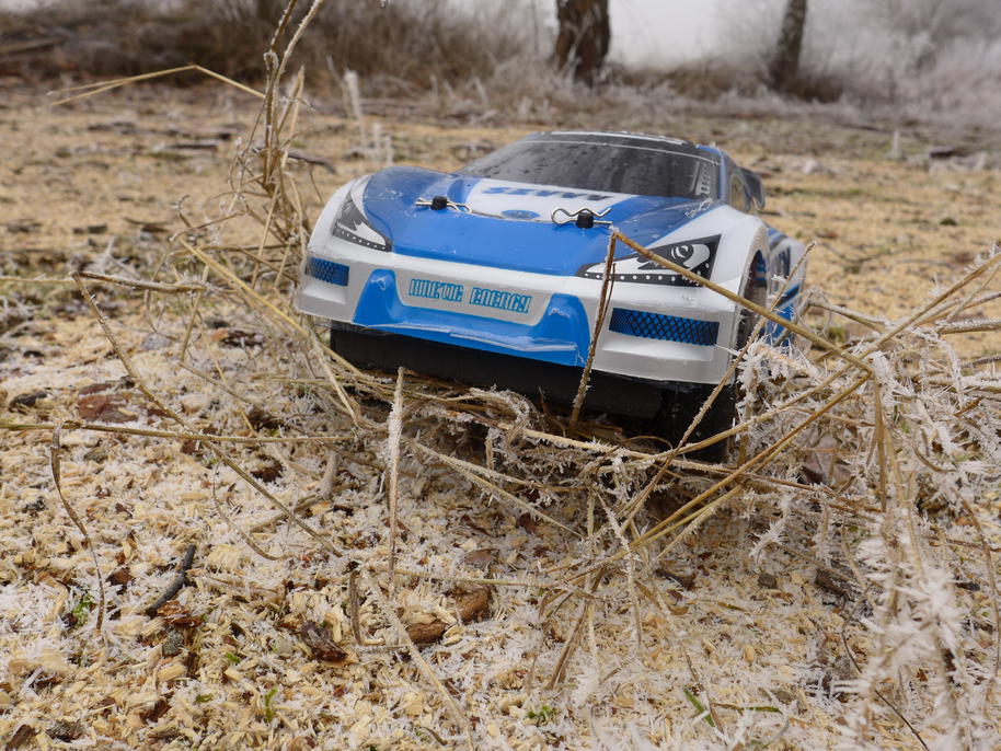 For a real off-road trip the car was waiting to have some dirt protection added to the chassis. At first, I thought I'd 3D print some fenders, but this turned out to be unnecessarily complex and possibly brittle. A friend of mine pointed out a simple solution – use a suitable polyethylene bottle :) . So I did and the dirt protection was ready within an hour and finally, we could have taken this car for an off-road trip. Since there is winter knocking on the door, the ground is already frozen and "Father Frost" has conjured up beautifully white ice spikes overnight – so enjoy the frozen scenery in this short video :) .