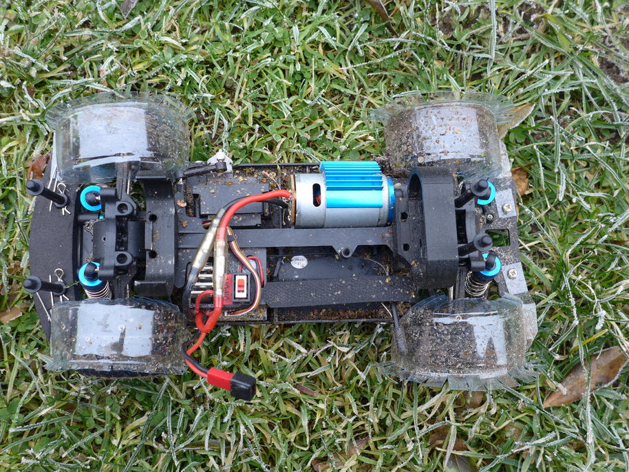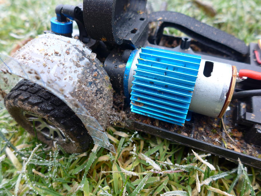 Moreover, my flexible fenders around the wheels prevented some of the dirt and water getting directly onto the electronics, motor and gears, but some more protection will be required at the sides of the chassis. The A979's solution was better.