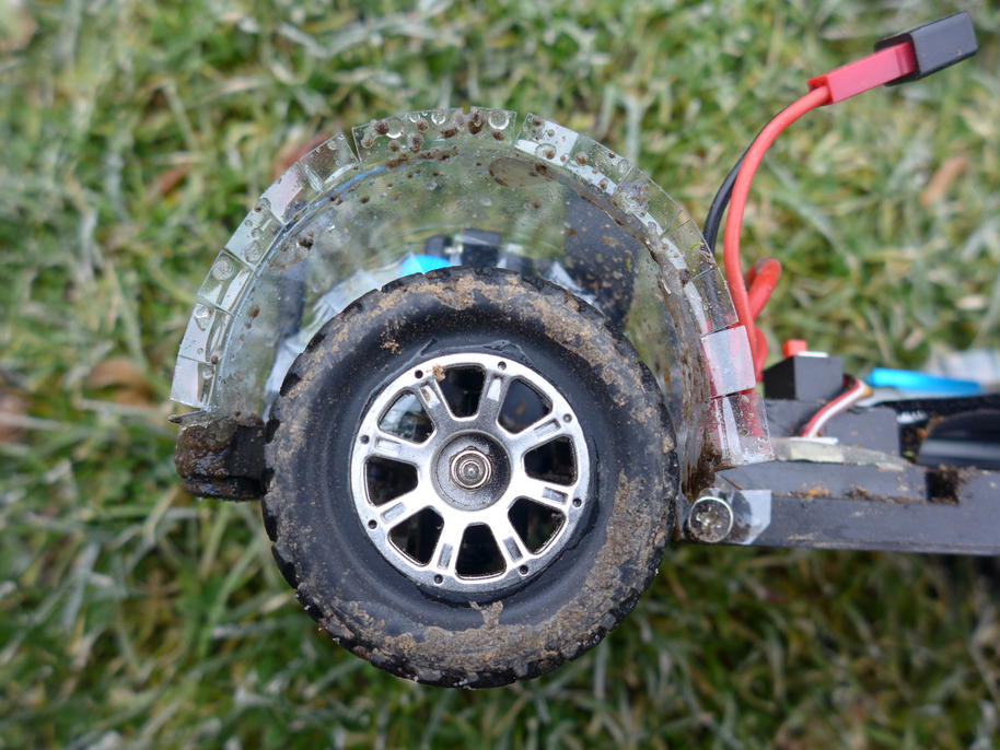 The fenders brought one more interesting improvement I didn't expect – they prevent the lexan bodywork from moving too much on the chassis. The bodywork then looks then more like an integral part of the car (i.e. more realistic).