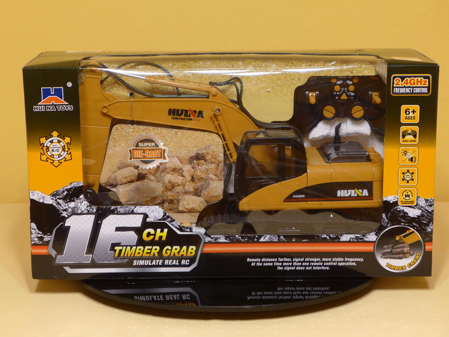 After a longer period of time, we've received another toy from GearBest. It is the Huina 1570 Excavator, or shall I call it a Log Grabber? Basically, its house, boom and dipper arm are the same as on Huina 1550, which has a backhoe shovel. Huina 1570 has a log grabber attached to its dipper arm. So much for the differences.