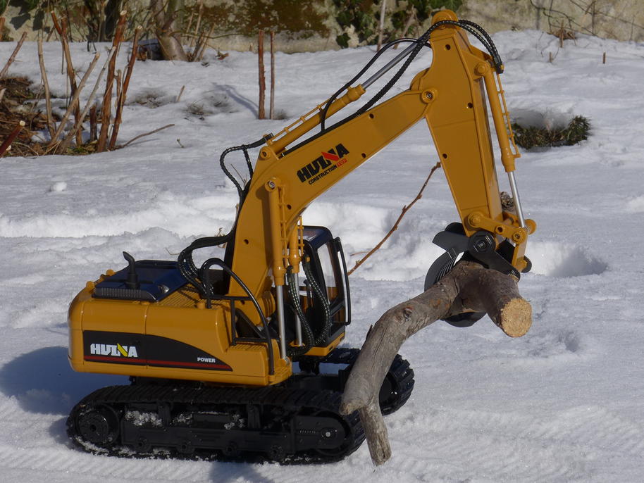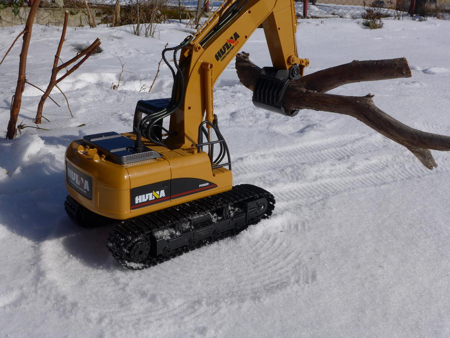 The excavator doesn't have the power of the real thing, so it is safe to children. Even though it has all the functions one would expect from an excavator while looking surprisingly detailed and realistic, it isn't probably meant to be used in any serious model building site. However, it is fun to play with and hopefully it would hold for some more time – I admit, driving it through freezing snow was a very tough test. When something breaks I'll definitely disassemble the whole thing to show you the damage and possibly give advice what to avoid.