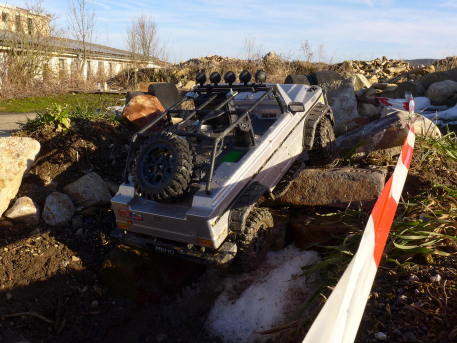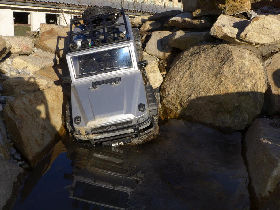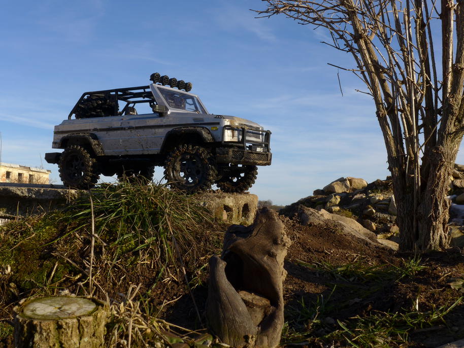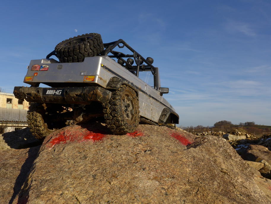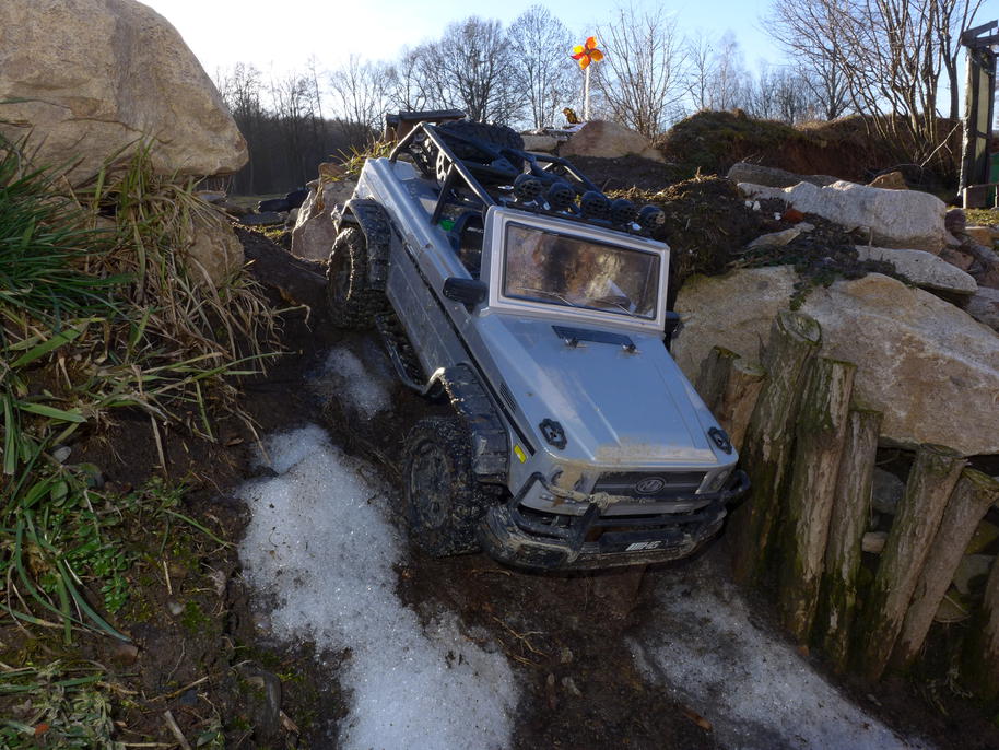 Cílem naší návštěvy bylo testovat pohonné ústrojí ... a zažít něco pěkného, optimistického, co by mi pomohlo začít zase normálně fungovat. Kupodivu většinu zvolených terénů dokázal Leguán překonat vlastní silou. Nedokázal se jen vyškrábat na strmé velké kameny uprostřed trial parku. Převodové ústrojí nyní ke crawlingu přímo vybízí – na jedničku se s tím dá konečně jet opravdu velmi pomalu. Dokonce lze trénovat i rozhoupání vozu – motor už dokáže s koly velmi jemně pootočit na minimum plynu, aniž by se muselo na vysílačce "kopnout do převodů" krátkým silným pulzem "plynu". Stále tedy zůstává otázkou, kam ještě Leguán dojede, než se vysypou rozvodovky nebo hlavní převodovka. O stavu jejich ozubení si nedělám žádné iluze.