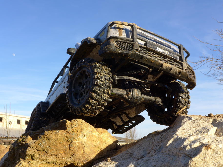 Boční nášlapy, nebo chcete-li "rock sliders", při velkém náklonu paradoxně pomáhají, auto se nebrousí celým bokem o okolní kameny.