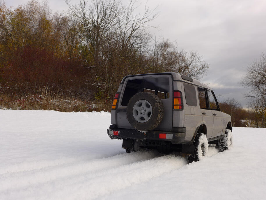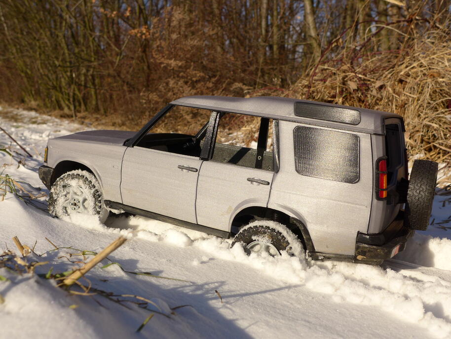 Koncem ledna se nám však naskytla skvělá příležitost pořádně model ve sněhu otestovat. Sníh byl zmrzlý a navíc svítilo sluníčko, takových dnů je v roce jen pár. Jediné obtíže nastaly v okamžiku, kdy si Land Rover lehl "na břicho", tedy pod diferenciály se nahromadilo tolik sněhu, že se kola protočila. Jinak ani prudké stoupání nečinilo žádné obtíže, měkké pneumatiky fungovaly skvěle, řetězy nebyly vůbec potřeba.