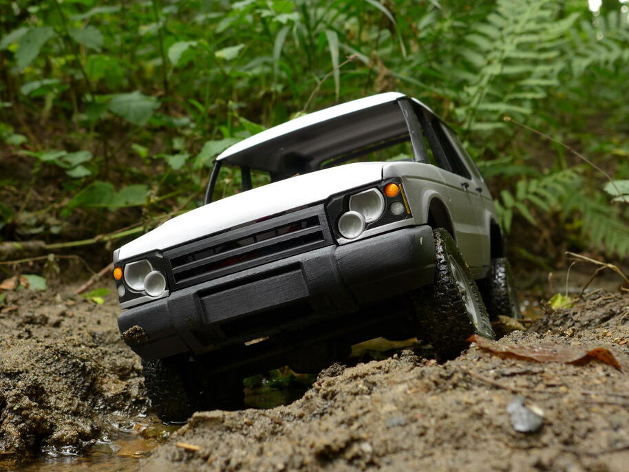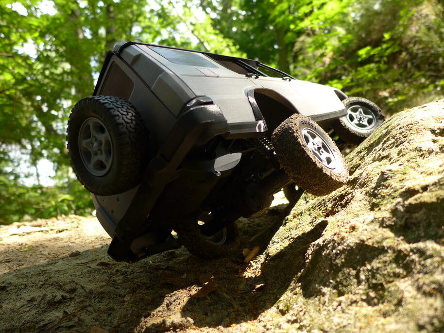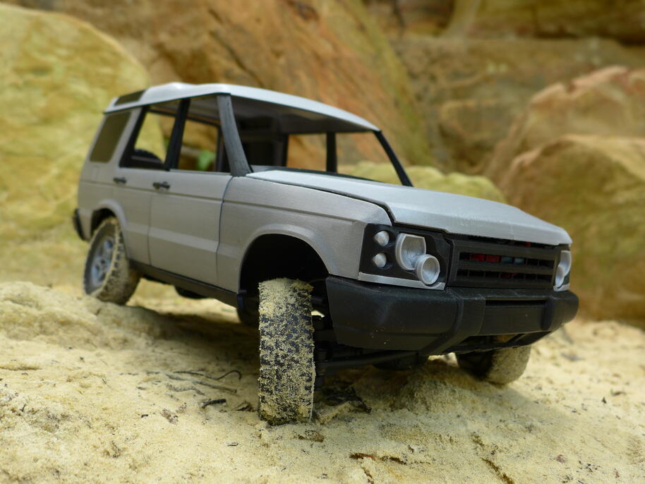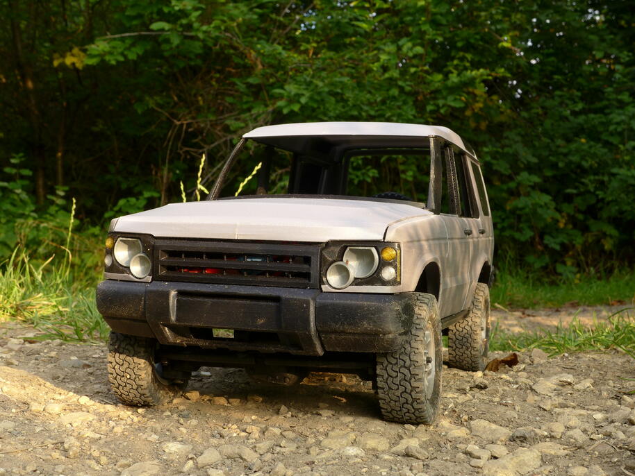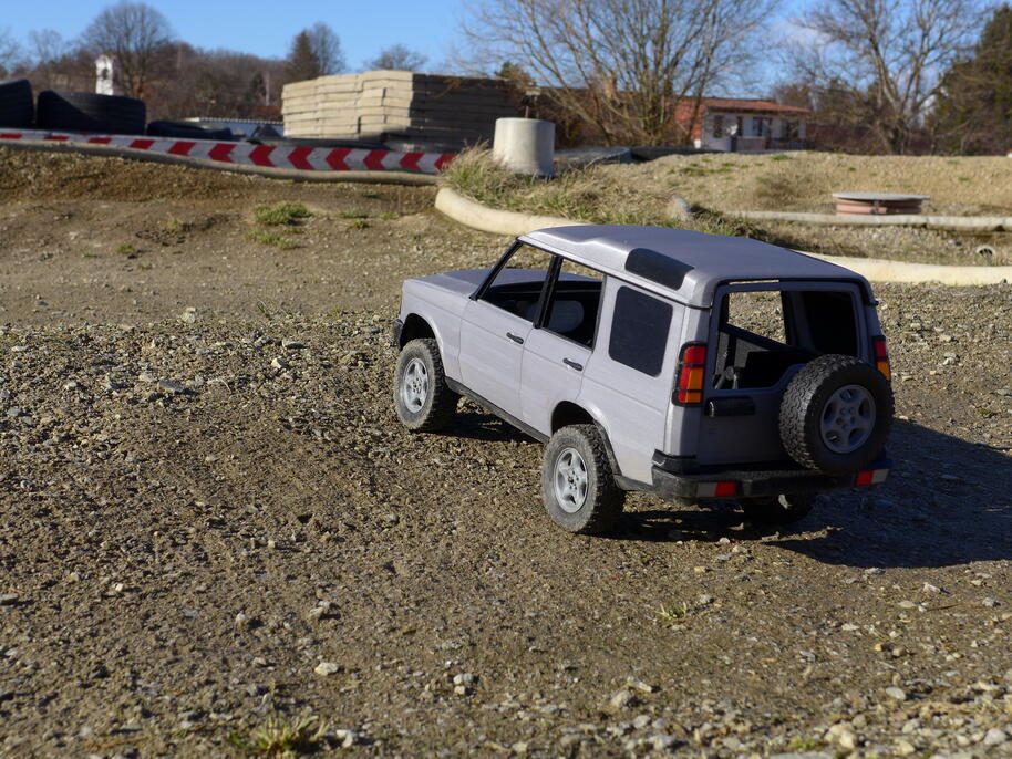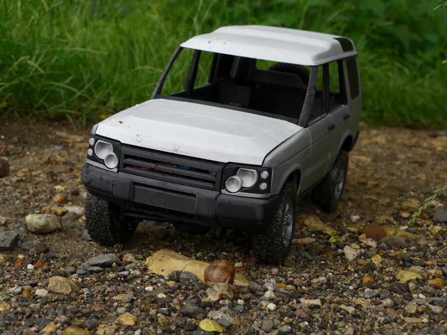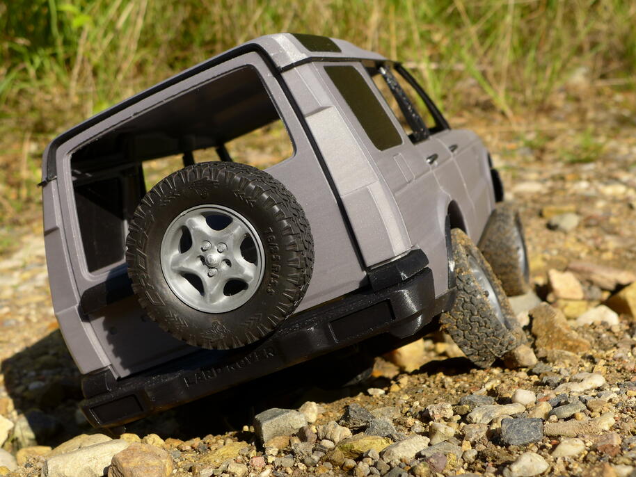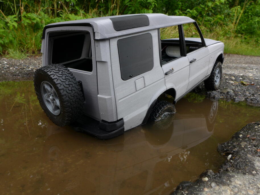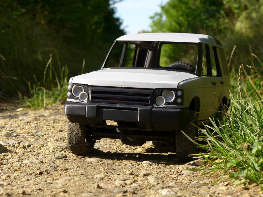 Dnes model v porovnání se skutečným vozem prokázal, že projede výrazně "více". Je to dáno i tím, že podvozek nemá žádné otevřené diferenciály – a taky odvahou řidiče – přeci jen model vyprostím dvěma prsty, zatímco skutečné Disco bude potřebovat minimálně traktor :) . Na těchto fotkách jsem si dal obzvláště záležet, abych fotoaparát držel opravdu vodorovně – a tudíž vynikl stále ještě stabilní boční náklon.