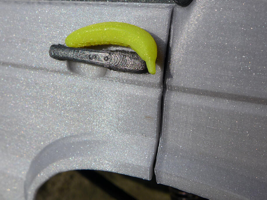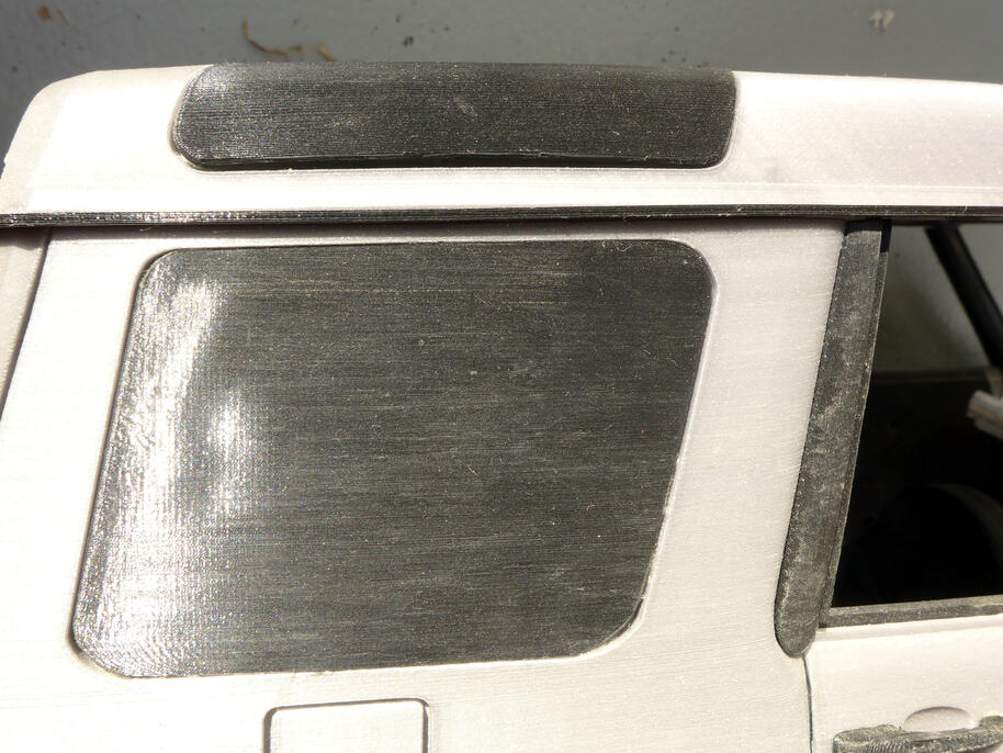 Sice svítilo sluníčko, ale karoserie modelu zdaleka nedosahovala limitních hodnot (60°C) pro PLA. Nicméně kolegovi, který nechal na přímém slunci svého Defendera v měřítku 1:8 od 3dsets.com se vlivem přehřátí prohnula střecha. Mou zkušeností je zatím deformace odložených prototypových blatníků ponechaných chvíli na přímém slunci na balkóně – tedy podceňovat riziko v případě PLA výtisků není radno.