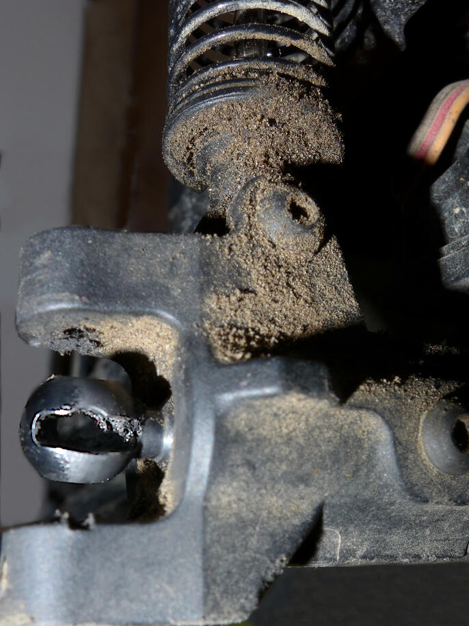 Motor se nepřehřívá a kromě výrazného hluku (rachtají kardany) je podvozek jako celek vlastně velmi spolehlivý. Před 50 kilometry jsem zkusmo provedl první rozborku hlavní převodovky. Ukázalo se, že ozubení není nijak poškozené a to, co tam občas rachtalo a pak dalo pokoj, byla namletá rez z pastorku, která se držela ve spodní části pláště převodovky. Ano, pastorek rezne, což je vlastně dobré znamení, protože není z čínského bláta jako u Leguána. O pár dní později jsem pak otvíral převodovku znovu, abych vyfoukal otruby, které tam nějakým neznámým způsobem pronikly.