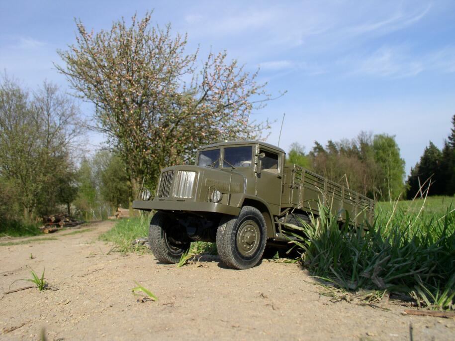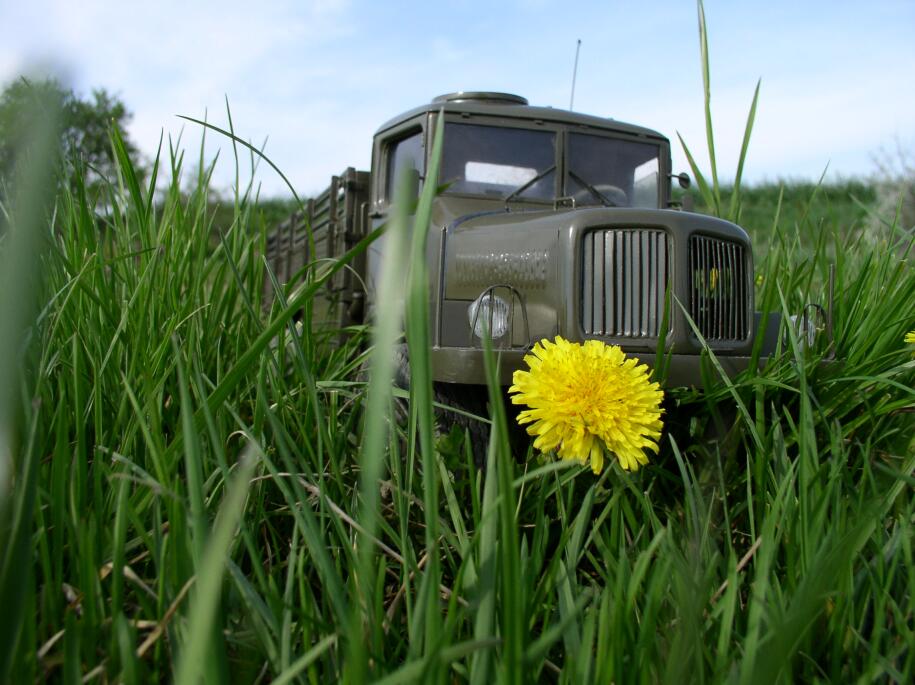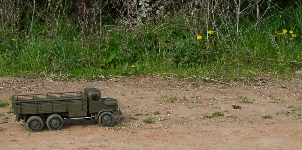 Neznamy samohyb bedlive sledoval poletujici motyl. Nekolikrat se provokativne usadil uprostred polni cesty, ovsem vzdy v bezpecne vzdalenosti od Tatry. Vsechny pokusy o detailni spolecne foto vytrvale bojkotoval a kdyz se Tatra priblizila prilis, zbabele uletl. Nahanel jsem ho 15minut, nez se mi povedlo aspon tohle ;) :