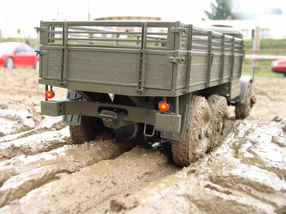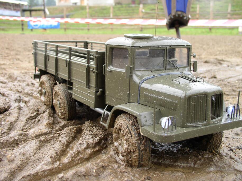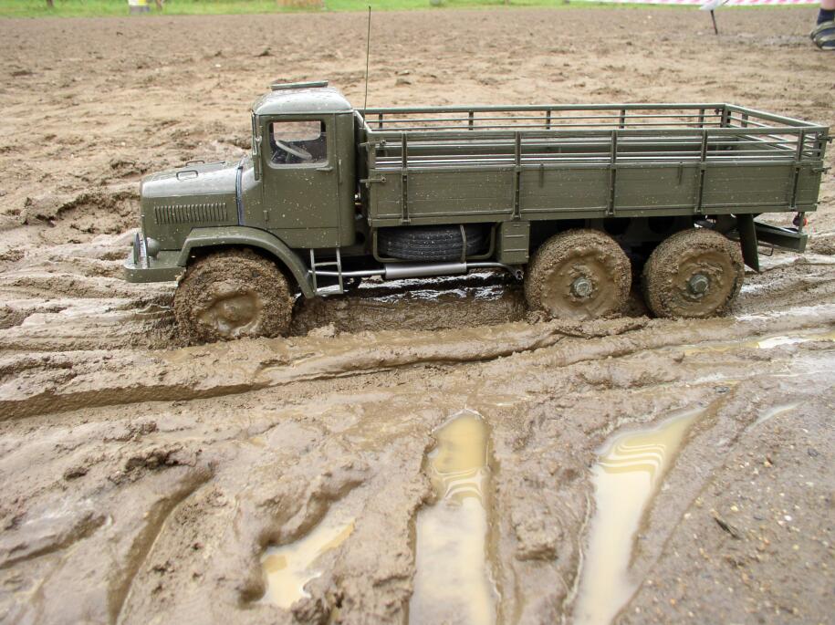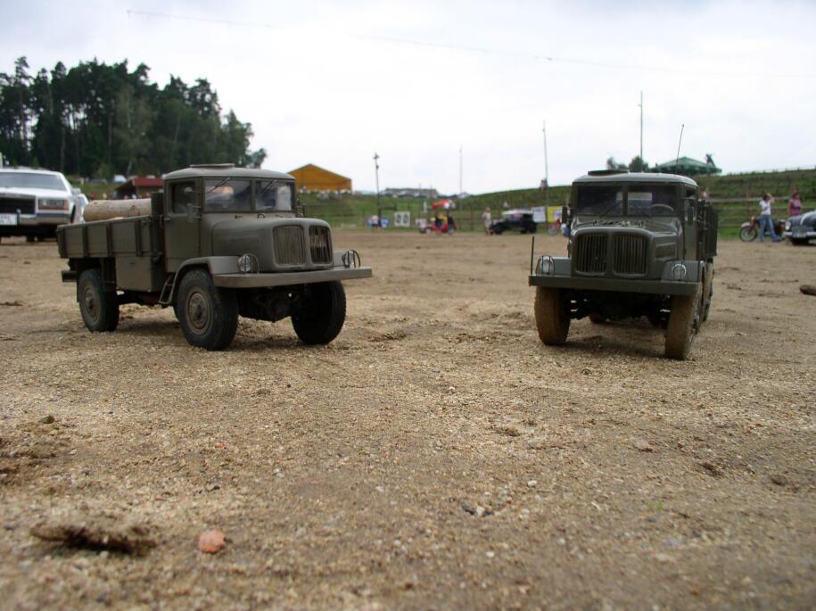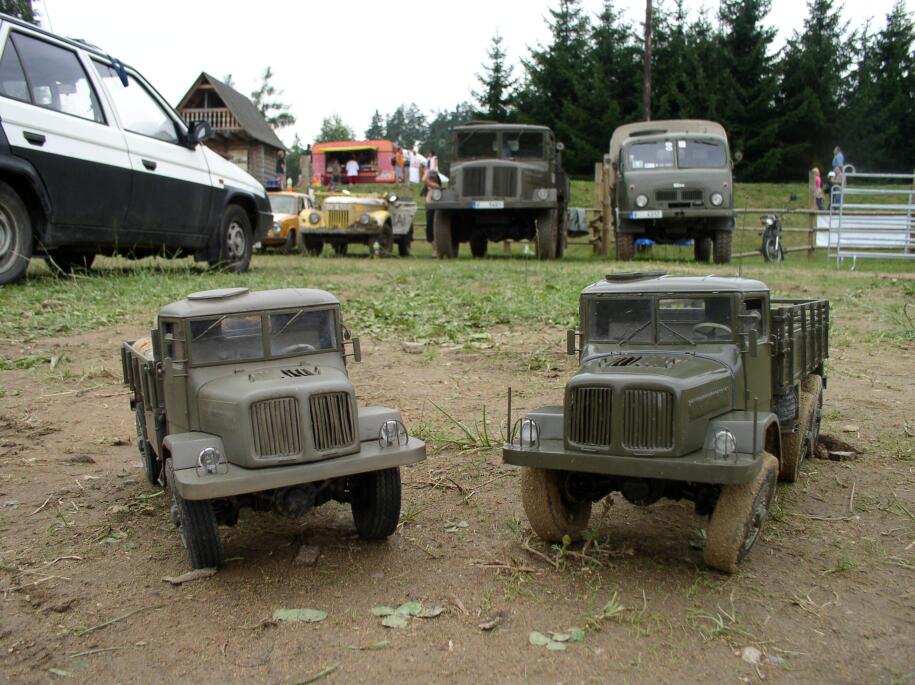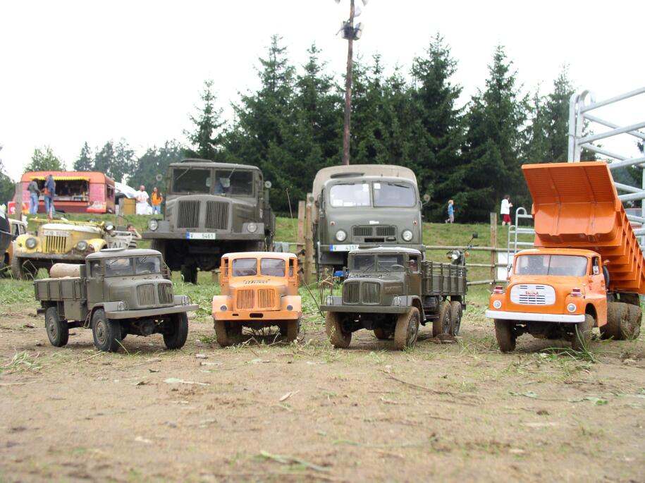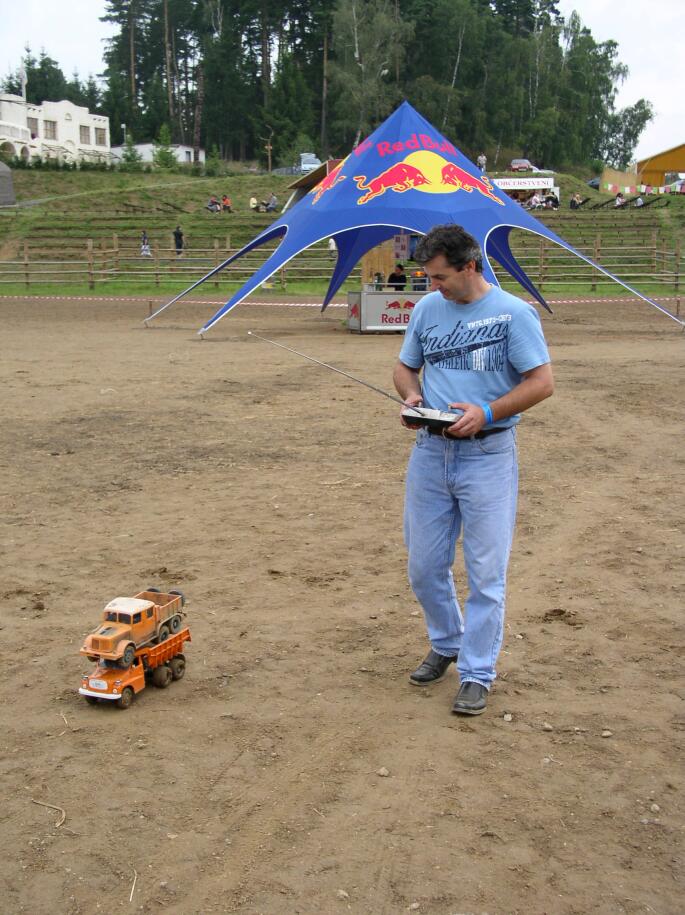 Celou akci provazela neprizen pocasi. Rano a dopoledne vydatne prselo, odpoledne se uz obcas ukazalo i slunicko. Modelove nakladaky mely vyhrazenou plochu uprostred hlinite areny, kde staly i veterany a tuningova auta. Co s timto oranistem provedl vydatny dest, si jiste umite predstavit. Nastesti stal uprostred areny stan Red-bull, kam jsme se vtipne schovali pred destem ... slecna u baru nic nenamitala ;)