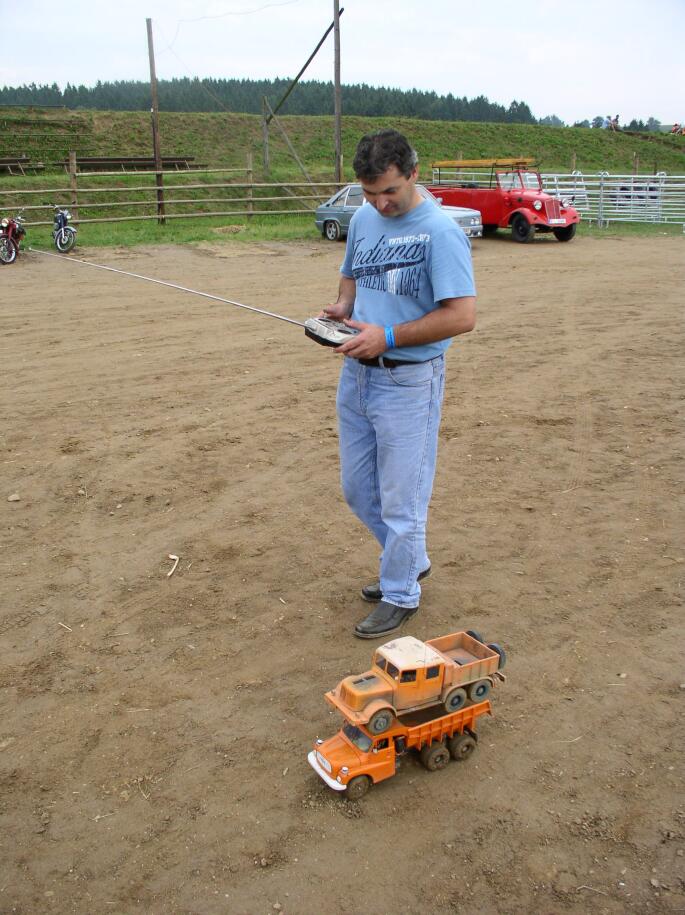 A takto se vezla pres celou arenu T141 predvest panu Proseckemu ... a take zpatky ke stanu Red-bull! (aneb jak presunout 2 modely se stejnym kanalem a jednim ridicem zaroven :) ).