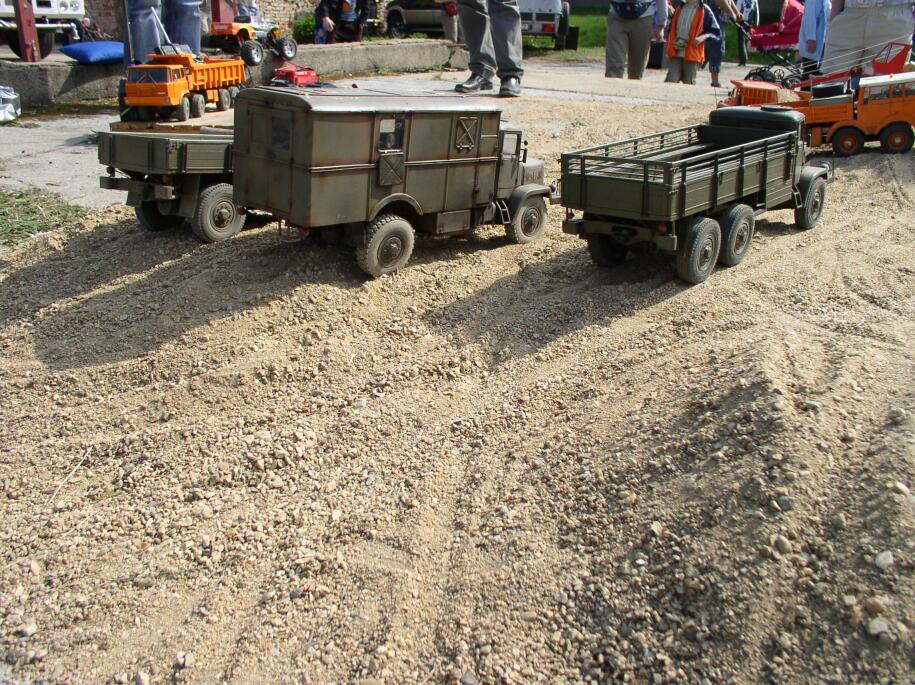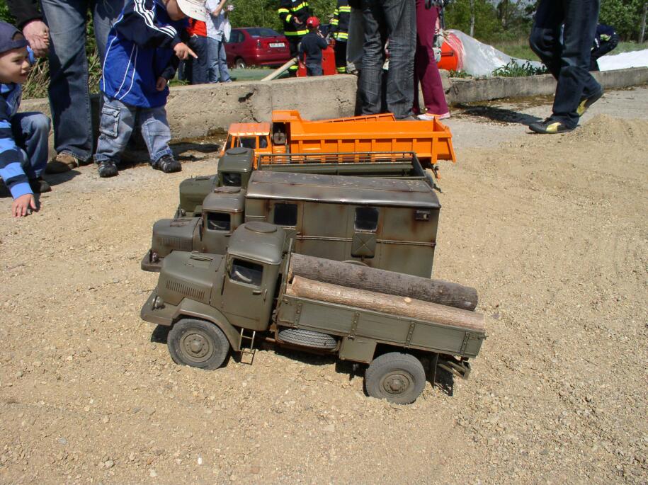 Zpočátku akce vypadala dost beznadějně, měli jsme vyhrazenou betonovou plochu cca 5x5m s malou hromádkou suchého písku uprostřed. Stěží se na ni zaparkovaly všechny modely a to v tu dobu ještě chyběla T128 valník a T813 TP 6x6. Padaly návrhy jako "uškrtit Martina" nebo "okamžitě odjet". Postupně hasiči dovezli několik dalších koleček písku a začalo to být veselejší.