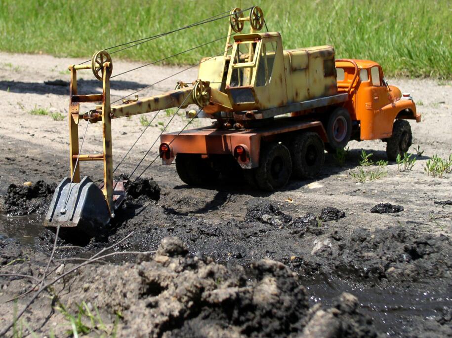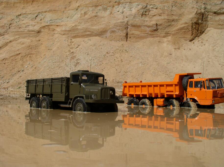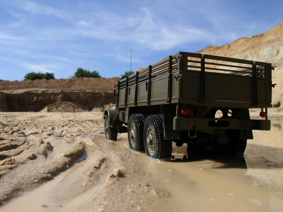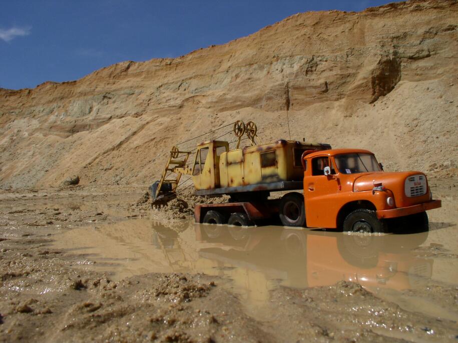 Neděle byla úplně super. V 9 hodin jsme dorazili do pískovny Chotouň. Vjezd nám otevřel borec místního družstva s PV3S, který jel naštěstí okolo. S Pepou jsme prozkoumali všechny terény v pískovně z hlediska jejich využitelnosti pro modely. Nakonec se nám nejvíce zalíbila rozsáhlá louže trošku stranou od ostatního dění.