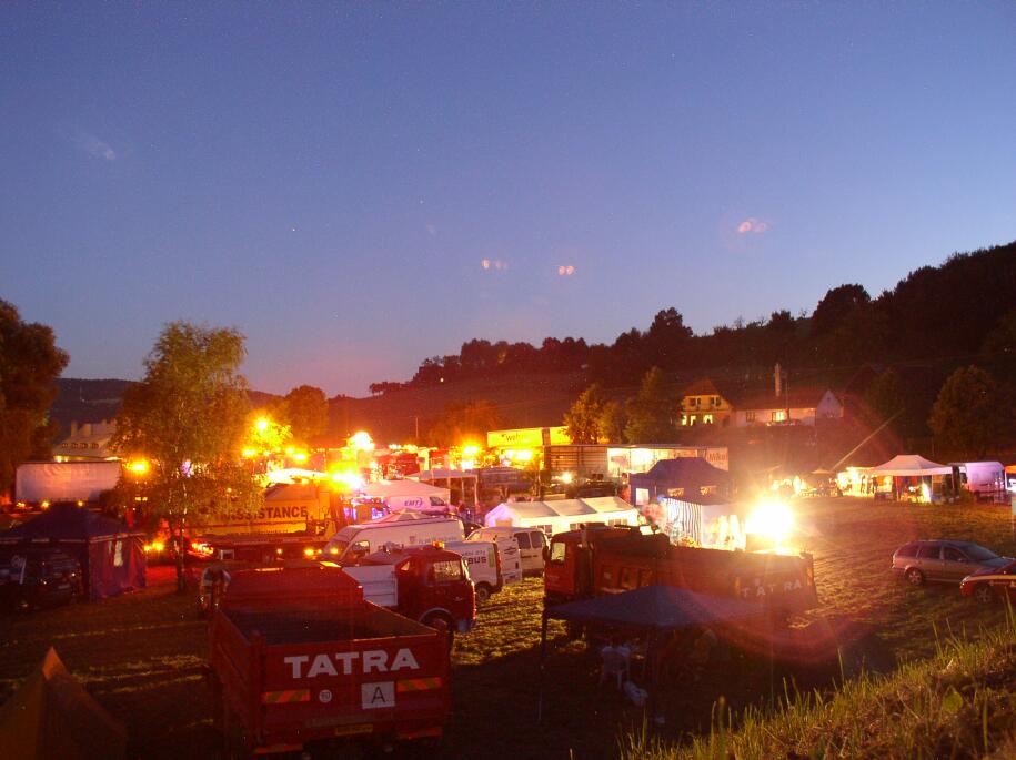 Truck sraz Zlín byla trochu zvláštní akce. Na nevelkém parkovišti pod hrází Kapřína v Březůvkách parkovalo odhadem 50 tahačů a několik vyprošťovacích vozidel. Na přilehlých travnatých plochách byl ještě párek Tater, Mates a oplen Mercedes ( = plněpohonná vozidla, která se mokré trávy nebojí ).