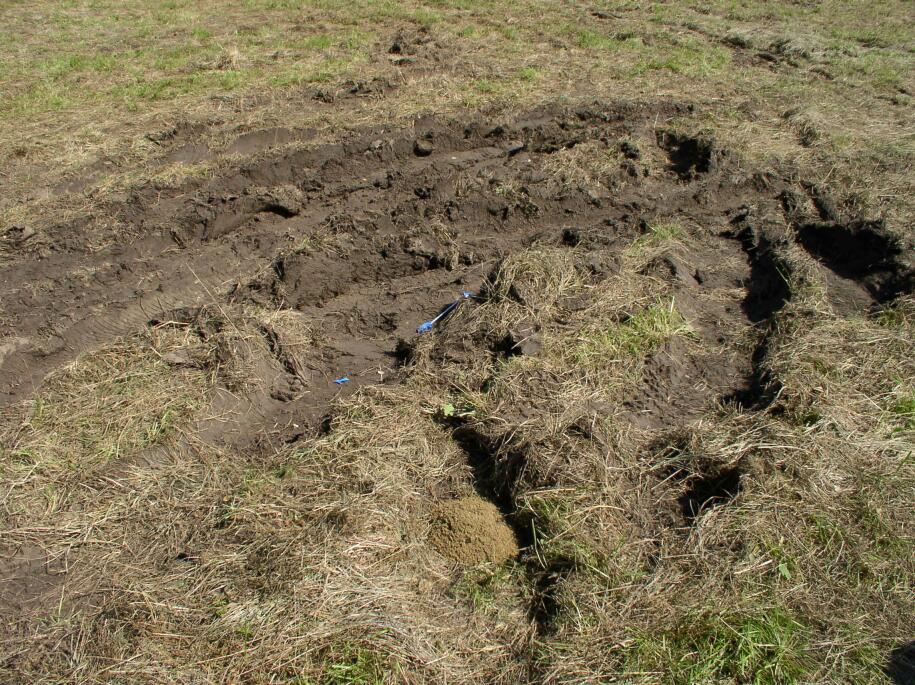 Vyjeté koleje po zasypání... kdybychom od začátku věděli, že písek bude použit na zasypání kolejí v trávníku, mohl se polygon pro modely udělat právě tady.