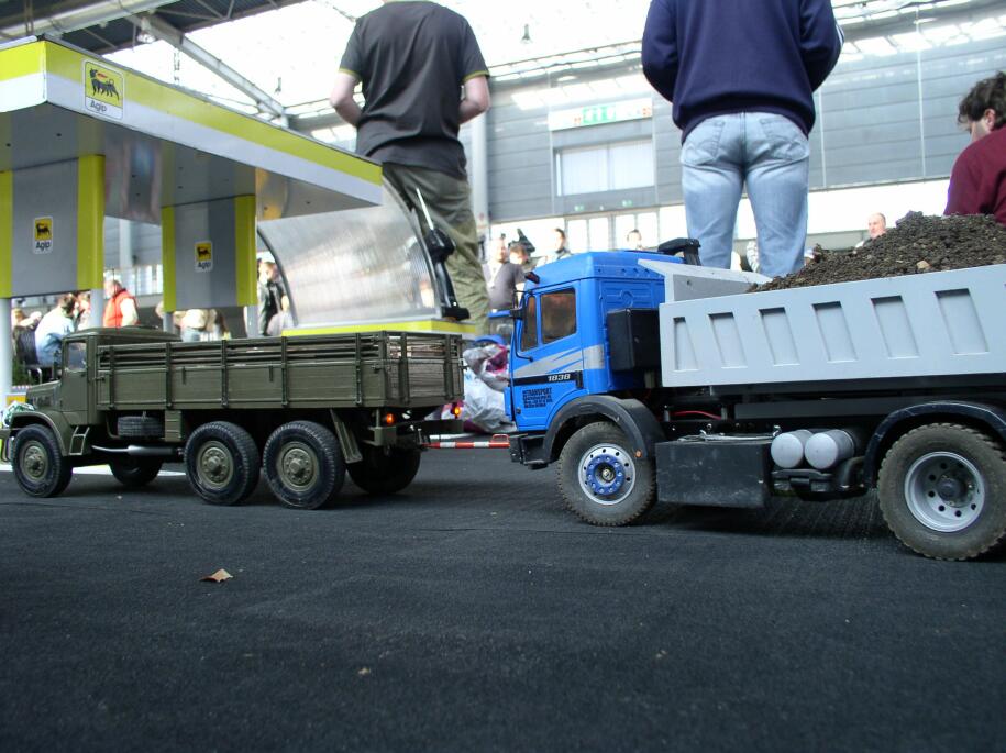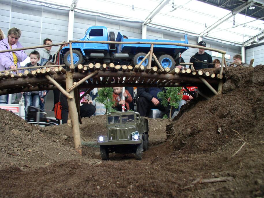 Hned vedle nás byli borci s loděmi, ponorkami ... a kachnami. Ačkoli vodu moc nemusím, zaujala mne rybářská loď s funkčním generátorem kouře, ponorka, která se uměla potopit (a hlavně vynořit :) ) a kachní rodinka – zvlášť táta-kačer se zvukovým modulem ... takové kachní kvákání – to by byl zvukáč pro náklaďák :) .
