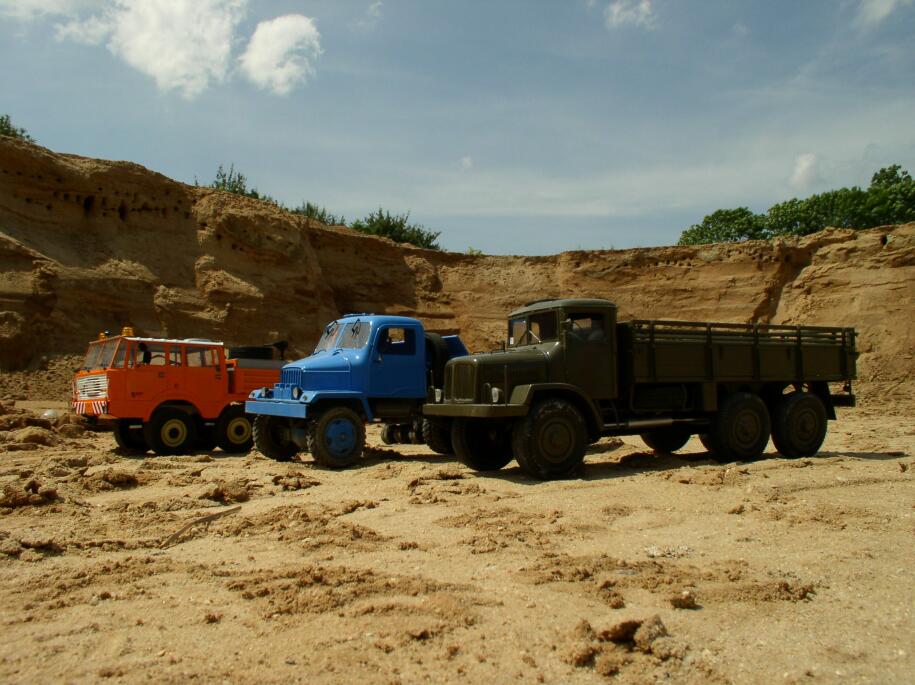 Neděle – nutno dostatečně brzo přiletět do lomu v Chotouni a modlit se, aby přijel někdo, kdo otevře závoru. Ten někdo byl borec s malou nákladní Pragovkou (nevím, jestli byl vůbec účastníkem srazu). Cíl – najít vhodné místo pro modely a pro natáčení. K tomu se LR hodí celkem dobře ... objel jsem lom a ujistil jsem se, že naše místečko z minulého roku bude ok. Tedy až na suchý a sypký písek – jízda v něm byla úplně "vražedná".
