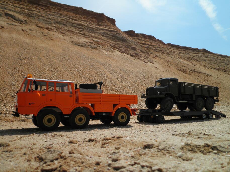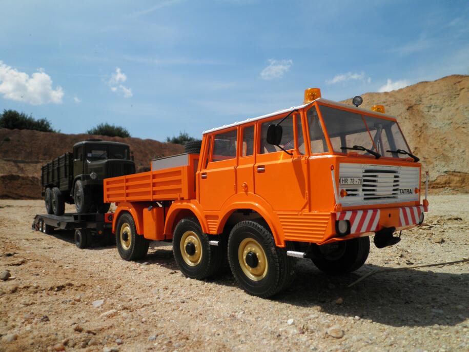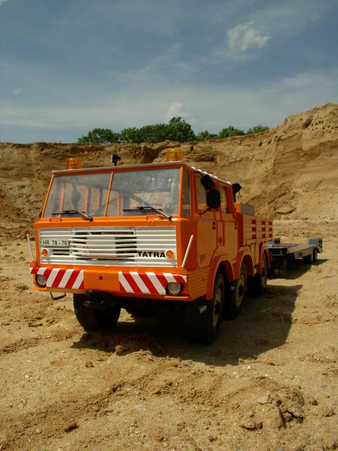 Dolu jsem se dostal až za hodinu, kdy opadl zájem o tento výjezd a nebyla fronta v obou směrech (!). V tu dobu tam už byly dost hluboké vyjeté koleje. Přijel jsem na "modelářský" plácek, kde se proháněla modrá PV3S a zrovna dojezdila T813 TP 6x6 s podvalníkem. Udělali jsme pár foteček...