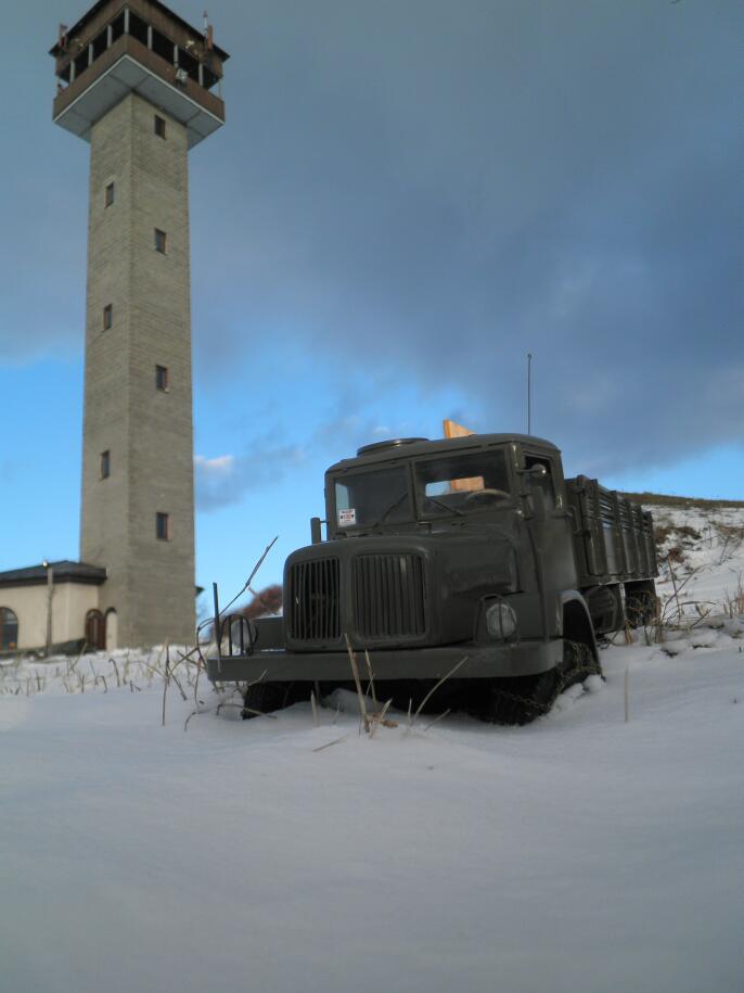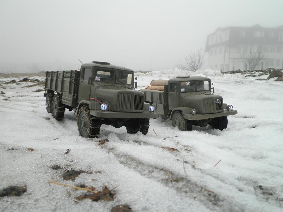 T128 na letních gumách zvládala kluzký terén až překvapivě dobře. Hlavně proto, že František je zkušený řidič. Jako rozhodující se ukázala druhá část pravidla o rychlosti v terénu – držet rychlost ve vyjeté stopě, případně auto rozhoupat (dopředu-dozadu). Mimochodem – koupel v rozbředlém sněhu a ledové vodě měla zásadně očistný účinek – T128 se po půl roce zbavila zbytků stříbřitého bláta, které měla ještě ze srpnového memoriálu .