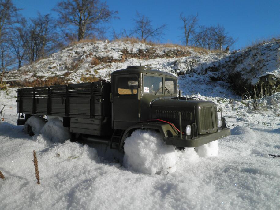 T130 s terénními řetězy si ve sněhu dělala, co chtěla (jeden řetěz opět roztrhla, když už jsem to fakt přeháněl a vyjížděl na malou jedničku do prudkého kopce). Prověřoval jsem chování zvukového modulu a zejména nové funkce – start a vypnutí motoru na povel. Ukázalo se, že bude potřeba lépe vyřešit nízké rychlosti jízdy. Zmrzlé převody mají tendenci se občas zakusovat a je potřeba "více plynu", než obvykle. Zřejmě to bez snímání otáček nepůjde...