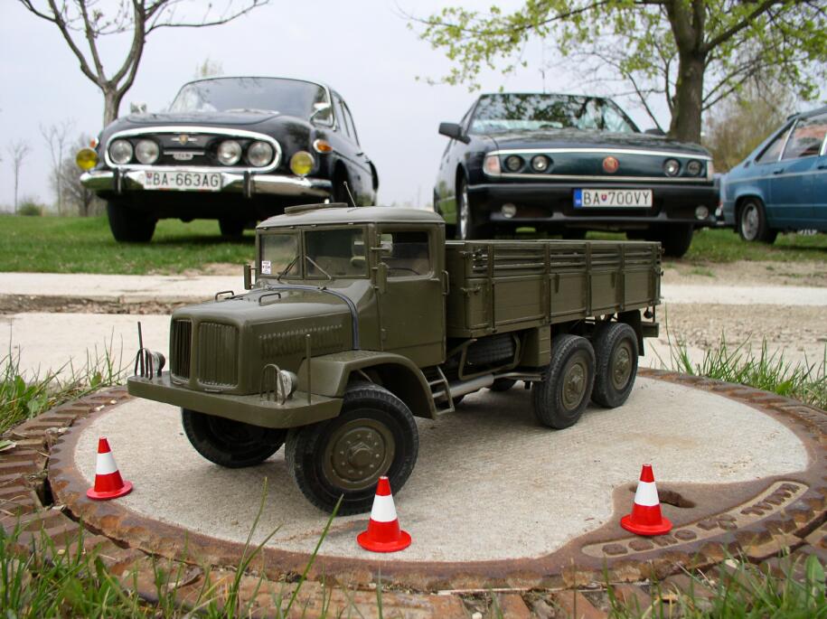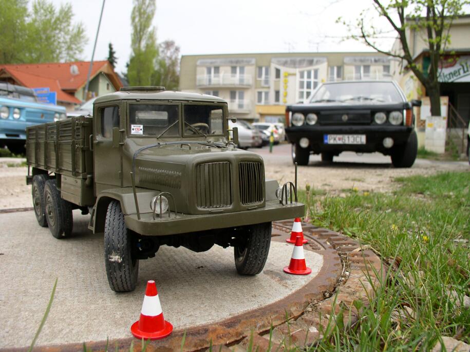 Sobotní ráno bylo podmračené. Po velmi vydatné snídani následovalo oficiální uvítání účastníků srazu a představení programu. Okružní jízda povede po Žitném ostrově v okolí Malého Dunaje. Prohlédneme si dva historické vodní mlýny, u druhého bude oběd a jízda zručnosti. Pak jsem dostal slovo, abych v krátkosti zmínil, že z každé posádky jeden dobrovolník projede stanovenou trať s nákladní Tatrou 130. Pepa mi pak připomněl, že jsem měl zdůraznit, že hodnota modelů je srovnatelná s hodnotou některých vozidel na srazu, tak aby se k nim soutěžící podle toho chovali.