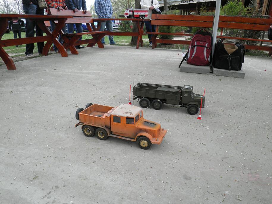 Na místě se mi zpočátku situace jevila dost beznadějně. Měl jsem na výběr z lehce terénního prostoru mezi stromy a z betonu, na kterém stály stoly a lavice místní restaurace. Její majitel byl s nápadem prezentace modelů srozumněn a nabídl i přemístění stolů. Celou noc mi pak v hlavě šrotovalo, jak to zařídit, aby byla jízda zručnosti zajímavá pro diváky i účastníky a zároveň bezpečná z hlediska modelu. A taky kde bude jezdit Pepa? Navíc mělo pršet...