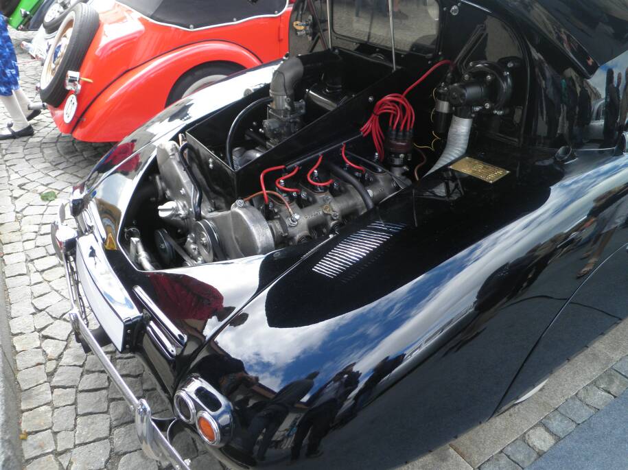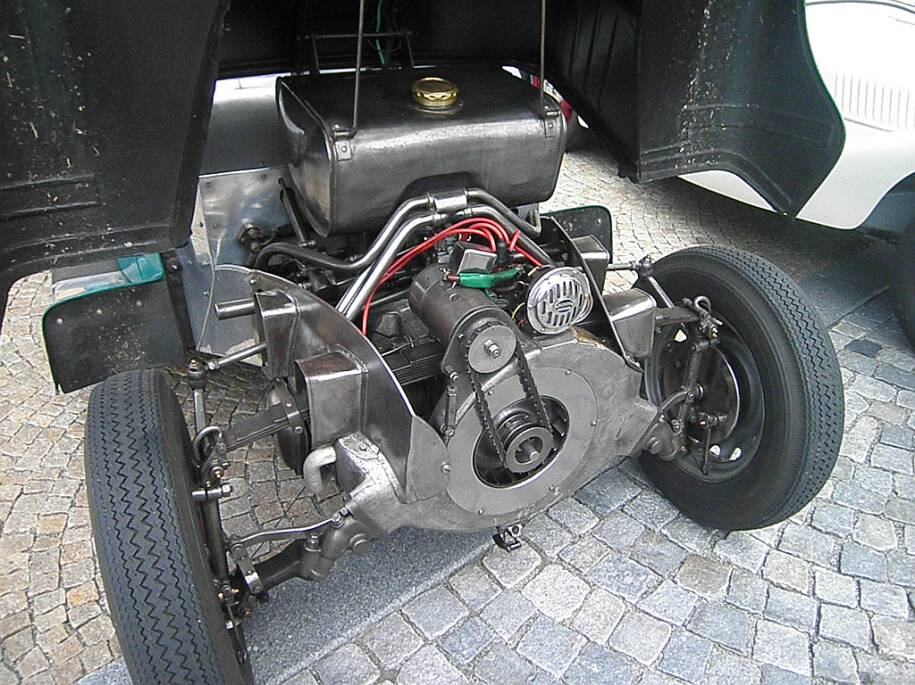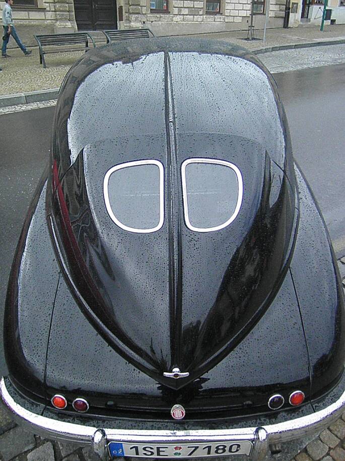 ... i několik "amerik" (proti nim je tedy T613 taková střední třída, co se velikosti týká). Ameriky vynikají zajímavými a u nás neobvyklými karosářskými kreacemi. Při bližším pohledu na ale podvozek překvapí konzervativní řešení – tuhá zadní náprava odpružená dvojicí půleliptických per. Skoro mám pocit, že jak jsou některá naše auta zajímavější technickým řešením, než vzhledem karoserie, u amerických je tomu naopak.