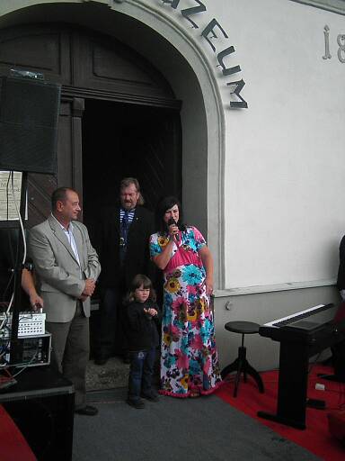 Již v pátek odpoledne byla v půdních prostorách bystřického muzea zahájena výstava svatebních šatů za doprovodu smyččového kvarteta. Zahájení se zúčastnila spousta známých tváří – mám pocit, že jsme potkali skoro celý bystřický tatraklub ;) . Sněhobílé šaty by to chtělo občas doplnit nějakým jemným barevným doplňkem, třeba červenou stužkou.