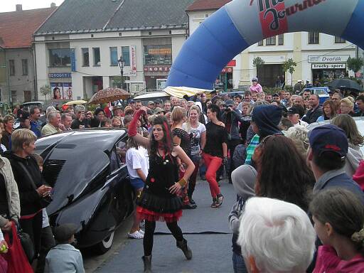 Jako v minulých ročnících jsem byl připraven předvést, jaký že velký náklaďák to vezu ve svém malém Renaultu. Už v autě jsem Tatru zapnul a ověřil, že funguje. Když jsme se po 30 minutách dostali na řadu, vystoupil jsem z auta a Tatru položil vedle něj. František mezi tím uvedl základní informace a zdůraznil, že od poslední návštěvy dostala Tatra "zvukovou převodovku". Požádal o ukázku a přitiskl mikrofon na kapotu Tatry. Stiskl jsem tlačítko starteru, motor se převalil a naskočil. Z reproduktorů na náměstí se ozval dusot všech 130 plnokrevníků doprovázený jekotem ventilátorů. Obkroužil jsem krátké kolečko, publikum tleská. Pro velký úspěch vypínám a startuji Tatru ještě jednou a už odjíždíme ze startovací rampy směr Olešnice, kde nás čeká malé muzeum historických vozidel a muzeum strašidel.