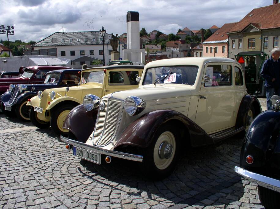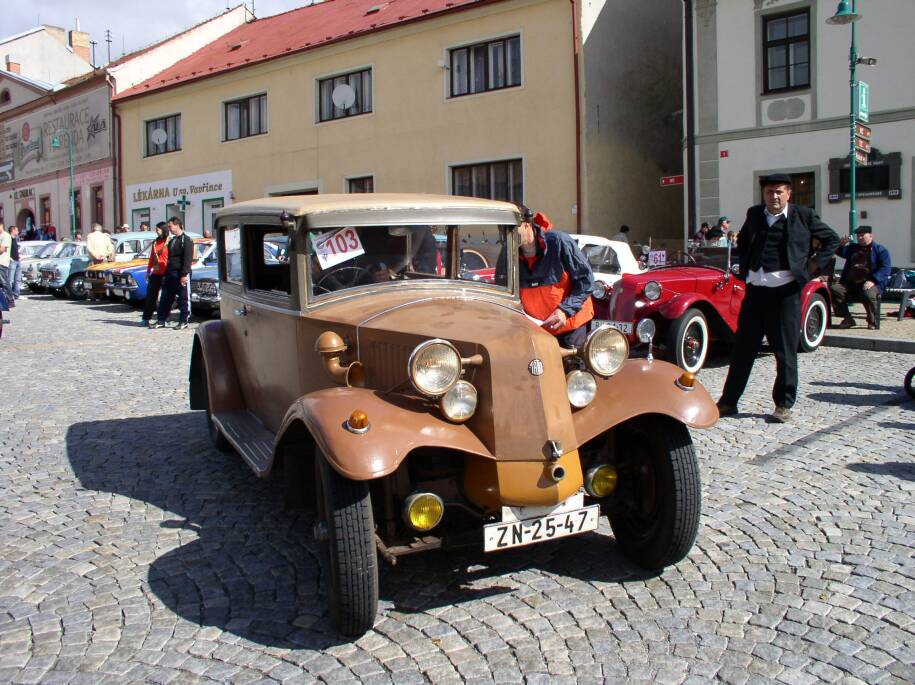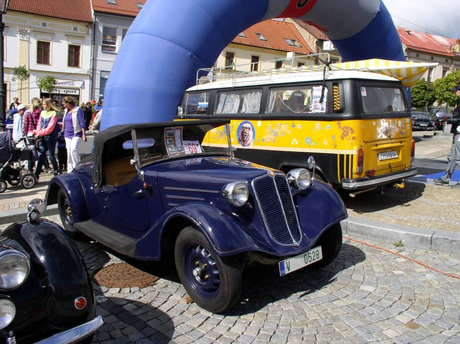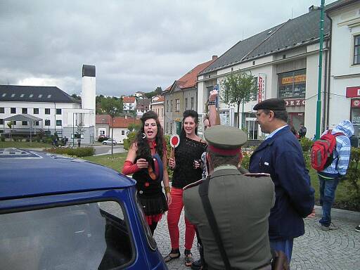 Od časného sobotního rána hlídají příslušníci Sboru národní bezpečnosti bystřické náměstí. Vjezd je pokutován blokovou pokutou 10 Kčs. Už při vjezdu dostáváme registrační kartičku s číslem a fotograf pořizuje snímek na diplom. Dle pokynů příslušníka SNB parkujeme mezi ostatní young-timery na místo, odkud byla před chvílí vykázána T613 (pro svou přílišnou délku).