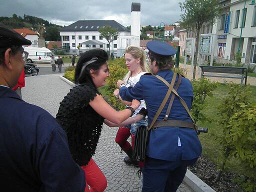 Punkerky ovšem narazily na hlídky Sboru národní bezpečnosti. Muži zákona neváhali a jali se děvčata zpacifikovat. Punkerky měly ovšem zásadní převahu, a to zejména morální. Výsledek střetu byl bohužel pro bezpečnostní složky naší socialistické vlasti zcela zdrcující: jednoho příslušníka zhmoždily, jednoho obraly o zbraň a klepeta a dva dokonce zesměšnily!