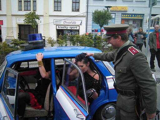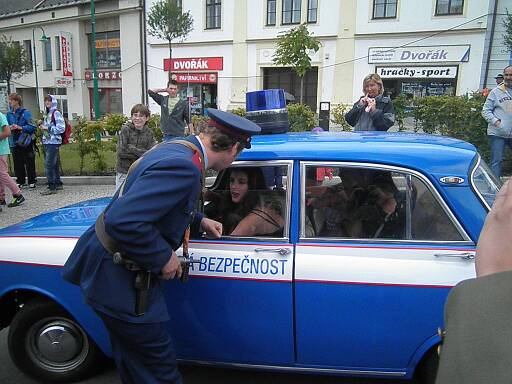 Zatýkání... jen se jaksi nepodařilo usadit mladé delikventky do Moskviče na správná místa.