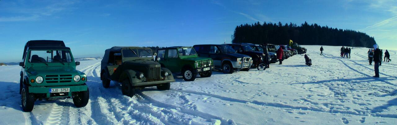 Předseda bystřického Tatraklubu vítá účastníky. Minutou ticha vzpomeneme na pravidelného účastníka silvestrovských vyjížděk Rickmana, který se odebral do motorkářského nebe. Následuje pár slov k charakteru trati a vyrážíme. Tentokrát se snažíme se tvářit nenápadně, přeci jen teď už naše "přepravka na Tatru" nesplňuje doporučené stáří účastnického vozidla ani omylem.