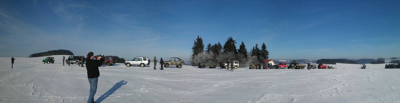 Druhé stoupání je delší a záludnější. Sypký sníh přikrytý tlustou ledovou vrstvou příliš dobrou adhezi nenabízí. První jede František, ale těsně před vrcholem jeho Avie protáčí všechna kola a zastavuje. Musí scouvat dolu a manévr opakovat. Pečlivě sledujeme počínání ostatních ostřílených borců a zjišťujeme, že zde bude hrát značnou roli počáteční rozjezd. A je řada na nás – malá čyřka, uzávěrka, dobrý rozjezd. Discovery se statečně škrábe nahoru, Traction Control svítí... Zvládli jsme to hned na poprvé. Je vidět, že Discovery je přes všechnu elektroniku a plasty stále především teréňák a ne jen hloupé SUV.
