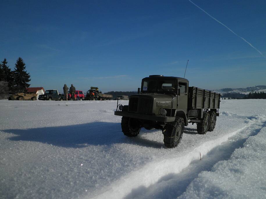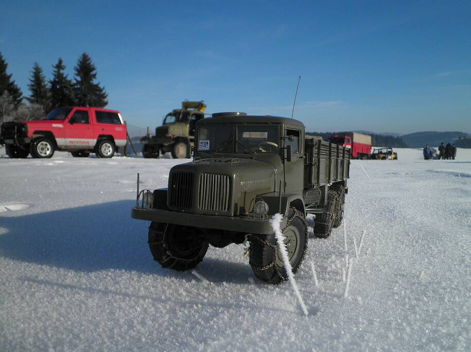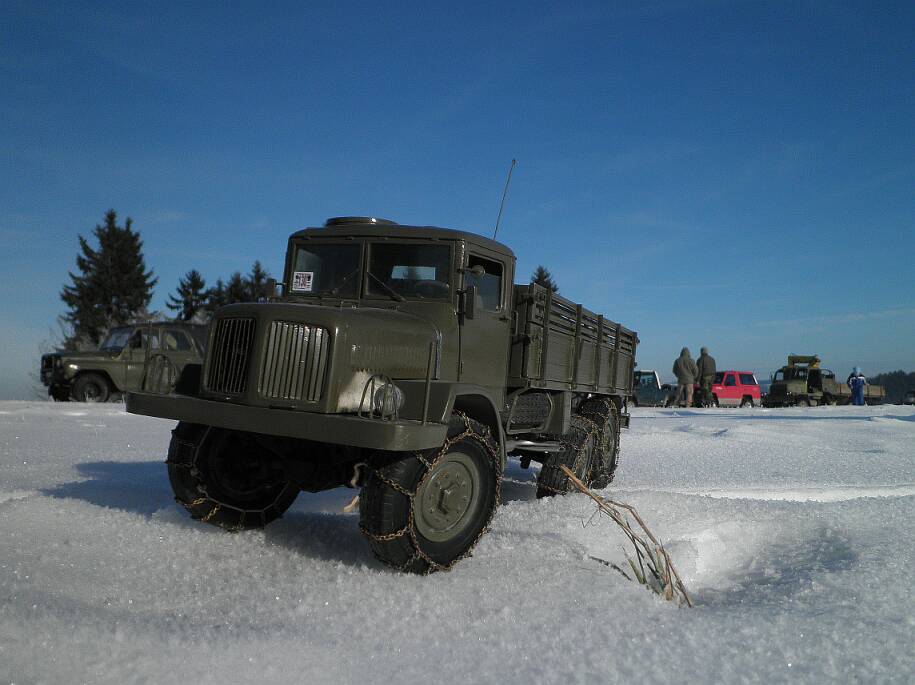 Účastníci postupně přijíždějí, překvapení novináři zpovídají organizátory srazu. T805 se předvádí ve sněhu a kontroluje funkci nápravových uzávěrek.