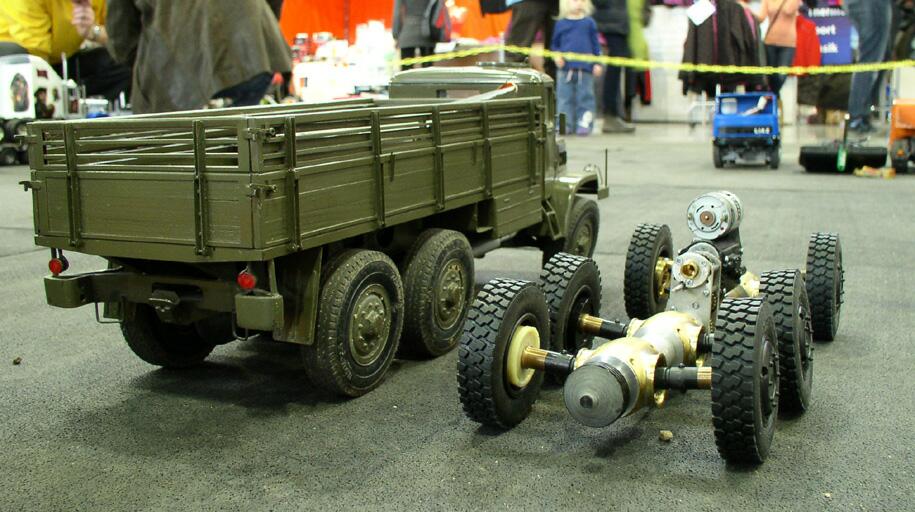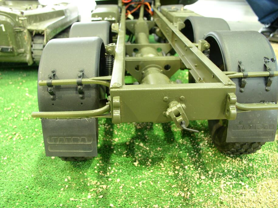 Hned ráno jsme vedle T130 na sucho poskládali připravovaný podvozek Tatry 84. Ano, T84 bude skutečně taková malinká kočička, ale věřím, že v terénu bude ostatní školit. Podle mého názoru (podloženého výsledky fyzikálních simulací) k tomu má všechny předpoklady. Výsledky jízdních zkoušek skutečného auta ovšem neznám ... prý se "soudruhům" z Lorraine-Dietrich v roce 1935 na T84 nelíbilo, že jako dělový tahač špatně překonávala zákopy. Tak uvidíme ;) .